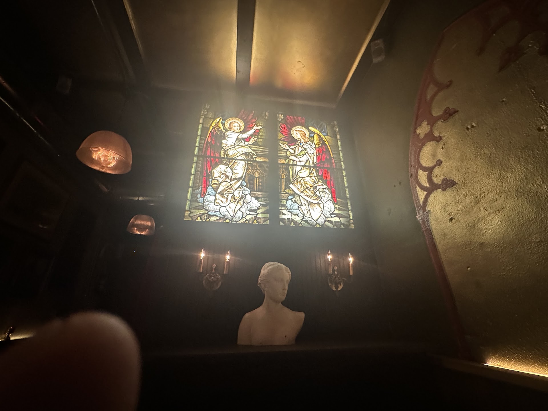 Read moreloved this place. on a tuesday at 8p there was easy parking on mlk. the bar was filled when we walked in but someone at the bar offered to move down so we could sit at the bar. interiors are borderline gothic in a mahogany wood and stained glass kinda way. super friendly bartender. i wasnât drinking but the patrons around me were raving bout the cocktails that were being poured by guest bartender bud green. they had marinated olives auspicious bakery pretzels - both of which we ordered and loved. great conversation with bar neighbors and a super chill Rhodesian Ridgeback whoâs human companions were on the barstools next to us. we were there roughly 2hrs and it was steady / nearly to capacity the whole time. im sure weekends are a whole other kind of packed though. i hope so. more places like this that are locally owned, non chain type business with character and charm to...
