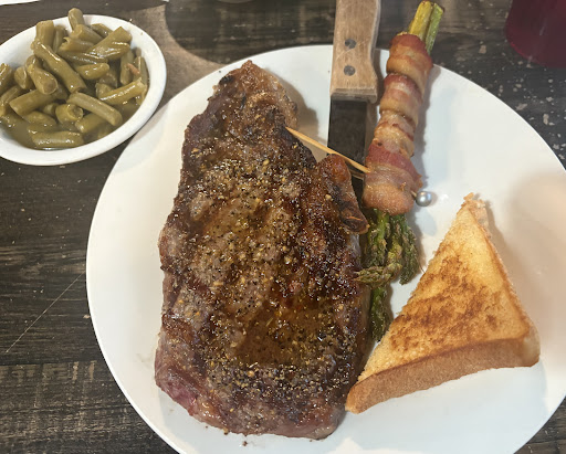 We did run into a few service hiccups. It felt like the kitchen was struggling to keep things flowing â food came out in pieces. The cheese fries had clearly been sitting for a bit and were cold when they reached our table. When our entrĂŠe came, the sides didnât arrive until afterward, which was a bit frustrating. The bacon-wrapped asparagus was a letdown â undercooked, oddly prepped, and not nearly enough of it.