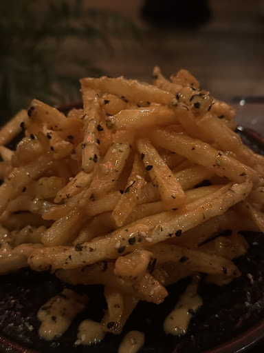 Read moreFavorite place in Savannah. For a few reasons but I’ll try and keep it short. Vibes and music are great they play the best chill house music I could sit there for hours. The food is top notch and I am sitting at my table at this moment in a food coma. But not stuffed where I feel gross. A very comfortable and fresh food. The steak skewers were out of this world especially with the grilled scallion what a combo! The “taco” wrapped in seaweed is perfect and makes me feel like a healthy goddess, but the hand rolls are really where my heart lies. Usually they are thick and chewy but not this time. Perfect ratio of fish to seaweed and garnishes. The truffle fries are a story in itself because last time, they ran out but this flavor was something unreal with the sesame seeds on it. Harrison just passed by he heard I was writing a review, amazing guy. Montgomery is the best server we are going to request her every time. Wish I could add a photo here but I ate it all, all 7 dishes in 7 minutes. I thought I would be coming here leaving room for a snack on the way home but nope, I want the night to end with my palate tasting like...