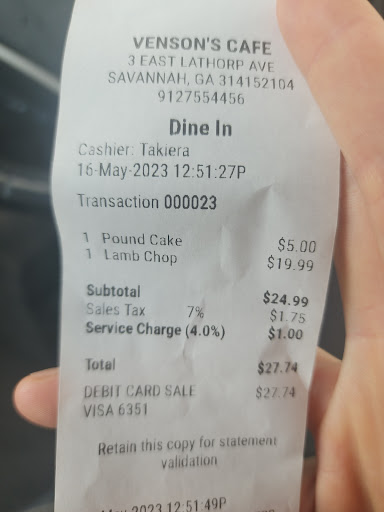 Read moreCharged me 27.74 for a piece of old stuffed salmon, overcooked canned peas, and old hard macncheese. The red velvet cake was delicious and tasted like how my grandma made it. But when I asked for a menu, I got directed to the old lunch food. And I got there at 1pm. That food had been out forever and the stuffed salmon was gross as all get out. The mix in the middle was imitation crab shrimp and rice all mashed together and looked like throw-up. It was gross. I've never spent that much money on lunch before and the lady rung me up as a lamb chop for what reason? I got taken advantage of and I'm not happy. I didn't even get a drink with my 30.00 take away. Talk...
