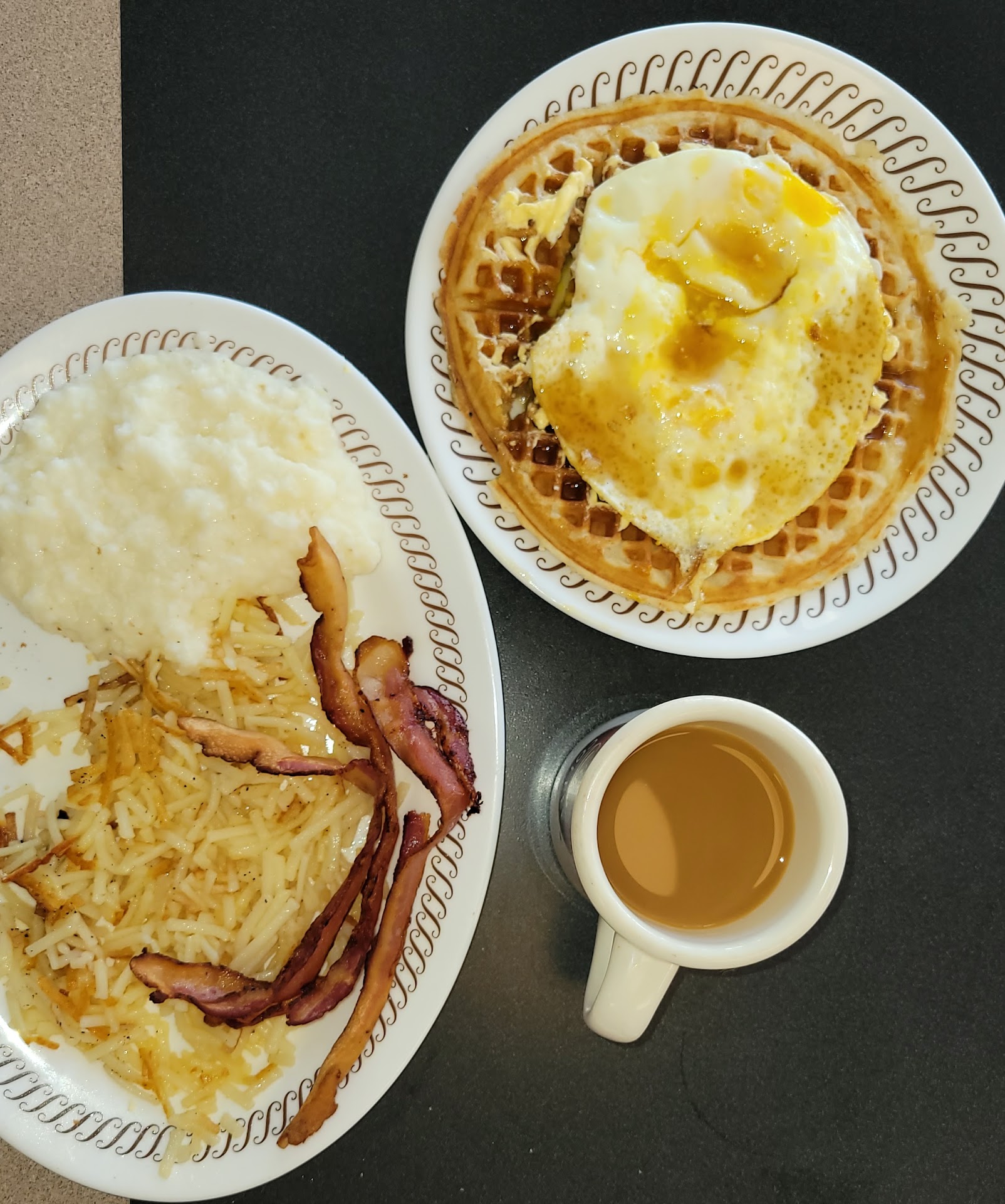 Read morefirst off upon entering, multiple tables were dirty, and that was with half of the place being blocked off for dine in. one of the worst Waffle House experiences I’ve had at this location upon arrival there was only one other person whose order was in the works so I waited about 15 minutes while service lady is yapping away with the customer about nonsense finally comes to take my order and she doesn’t even write it down right then upsells me on the toppings for the hashbrowns I bite only for her to come back and say they didn’t have the topping that I requested when I finally got my order the first time left out the bacon and when they brought the rest of the order that I had they didn’t even bring all the waffles that I ordered I also asked for jam and never even got it bruh and I only had two all star breakfast. I spent about a hour in there and vast majority of that time was just waiting for service probably won’t eat there whenever that server is on the clock again… think her name was moni or something like that it started with...