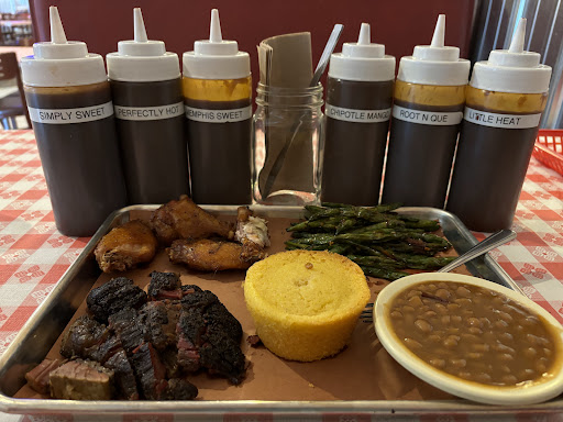 This was mine and my fiancés first time here! The food was mouthwatering good. We had to take a moment to pause after every bite because there were so many amazing smoky flavors hitting our tastebuds at once. My fiance got a platter that had brisket, burnt ends, ribs, potato salad, and beans. I tried a bite (or two) from everything and my most favorite has to be the ribs. They came off the bone with such ease and they held the most flavor! I ordered to the pulled pork sandwich it was also amazing! They toasted the bun and it gave the perfect crunchy texture and flavor! I prefer a sweet BBQ and that’s exactly what they had. They have 7 different BBQS one mustard based, a few sweet, a mild, a hot, and root n que.