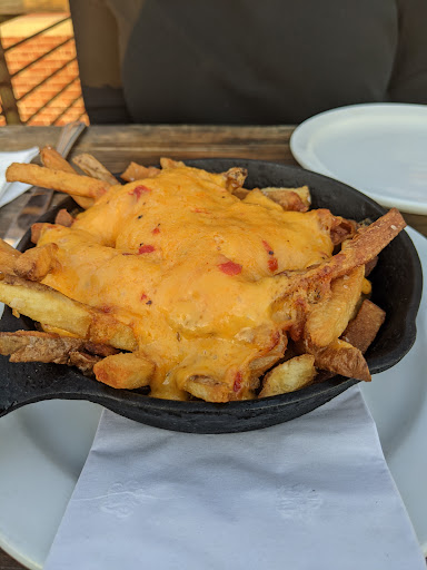 The food I will give mixed reviews: of the four in my party, two loved their entrees and two didn't care for theirs. The portions were small. The mushroom confit and the pimento cheese fries we ordered as appetizers to share were devoured in minutes. The seared pork chop was very juicy and was served with delicious glazed carrots; the trout cakes were different but tasty. The vegetarian bowl I did not try but the person who ordered it only had a few bites before passing on eating the rest.