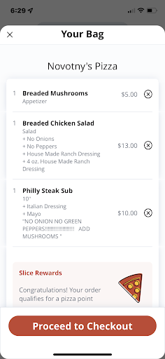 The food showed up. The pizza was cold, that at least I could've heated back up maybe. But then I worried about my chicken salad with eggs..... guess what? I took the lid off and put my hand on the salad and it was boiling all the way through like pizzas were set atop it for the hour and a half it took to get a small pizza and salad to me. I can understand a lot of things. I am very reasonable. But when I call in to talk to someone and I get hung up on twice and then put on hold just to come back and say there is no manager. You know what? I do not want irresponsible kids that have no chaperone handling my food and I will be in with the food and my receipt because I will not be charged for food poisoning and poor customer service. Do better, we all get that the food industry is overwhelmed but there is no excuse for poor food handling at all; EVER. Pic of my...