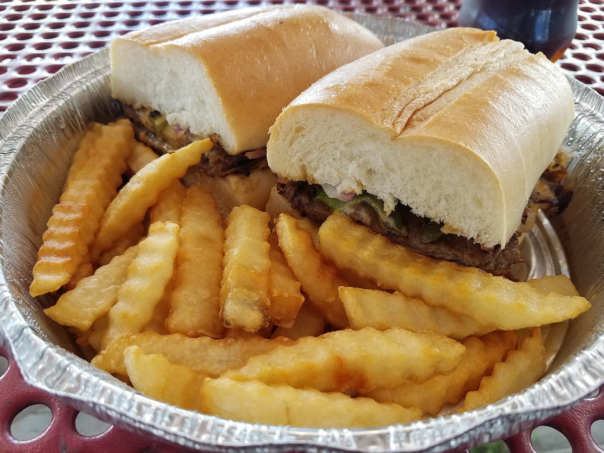 The cheesesteak was just disappointing. Instead of breaking up the meat to make the cheesesteak, they just threw the slabs together to cook like that. My sandwich was just a thin steak sandwich with cheap cheese thrown on top. The bread was still soft though.