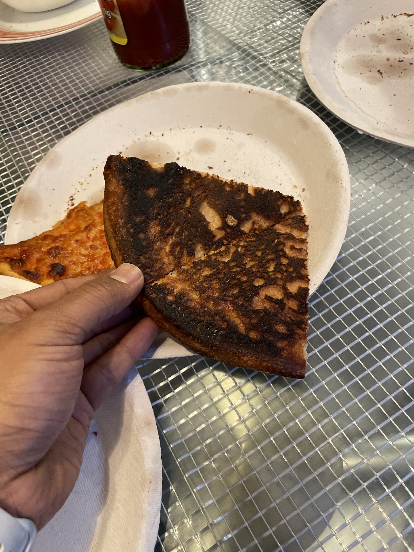 Then there are the condiments. There is the grated Parmesan and the pepper flakes. They are also just like the US. But they also had bottles of Start Hot Curry Sauce. (Did I mention I like exotic flavors?) Good stuff and it does lend an Indian flavor to the pizza. In Parlin of you like the Start sauce you can find it just a few feet away at Patel Grocery. The North Brunswick Singas is also right next to an Indian grocery, I think.