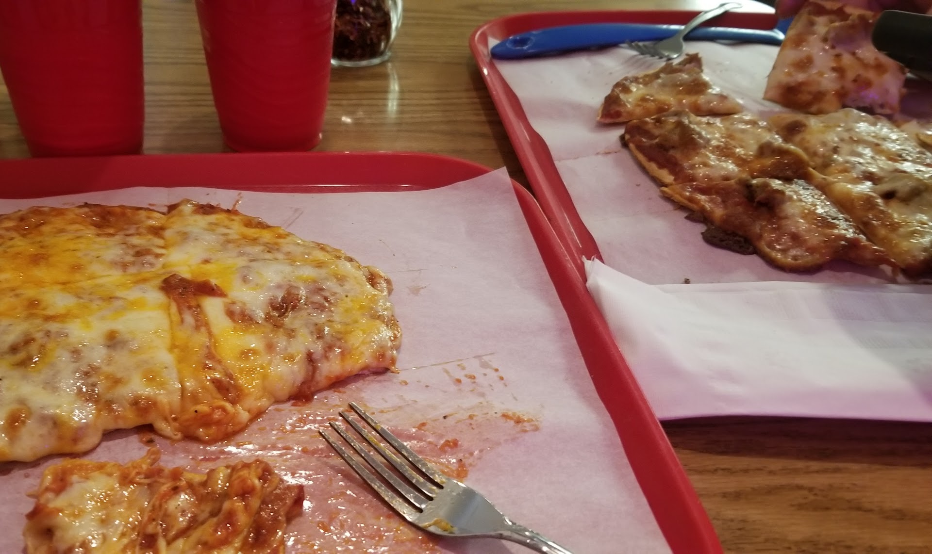 After a hard day of training, my associates and I were hoping to get some delicious za in our tummies. We came at 7pm to the restaurant, we were greeted by two blonde teenage girls who said âwe can make you a pizza, but you canât eat in here because we close at 8pmâ. They were rude and unwilling to answer our questions as to why we couldnât eat in the restaurant. Rule of thumb, if your going to advertise that your hours are till 8pm. Donât kick people out at 7pm. Iâm sure they have gas pizza, but not many people will ever know because they have baboons running the counter. Hope I can come back for a slice when the service...