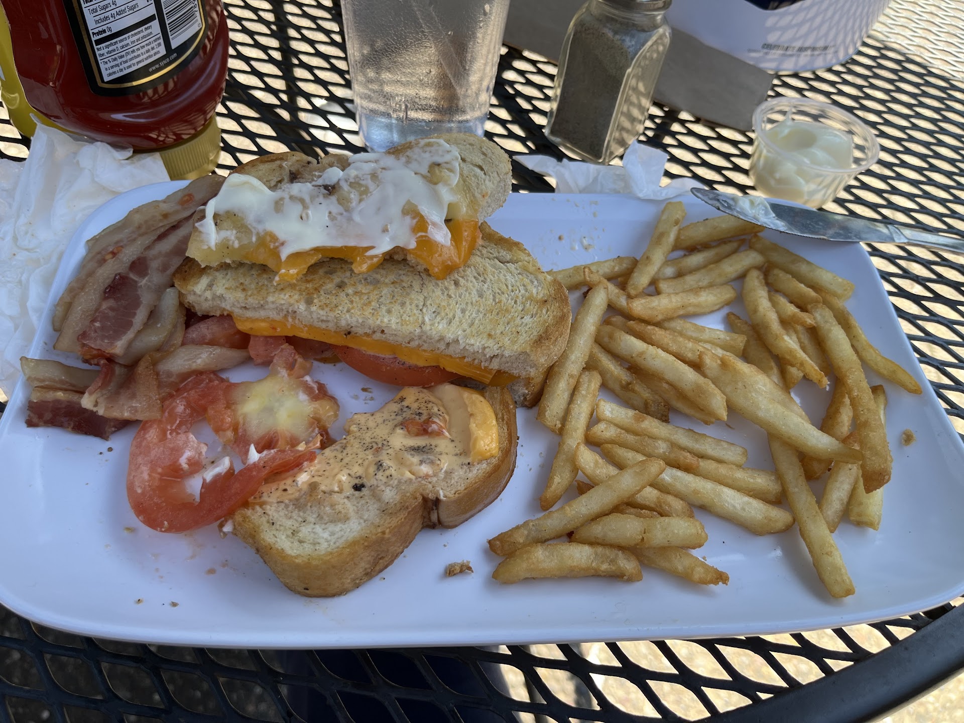 No complaints about the service at this restaurant. I cannot say the same for the food. I ordered an adult grilled cheese sandwich with bacon. The bacon was almost raw. The cheese was tasteless and the sourdough bread had no flavor. The slice of tomato still had the inedible core in the center. I was expecting something hot, gooey and full of flavor. The sandwich was none of those. As far as atmosphere -it was very disappointing. Walking into the restaurant a couple children ran past us to get outside to play. Thought nothing of it. Server inside invited us to sit wherever we wanted. Great! We sat outside. What we observed on the patio….Two large tables with a group having a meeting and one large table with about 5-6 kids, no adult. Didn’t think too much of it -Figured an adult would soon return to this table. One small table, two adults, two children. In one hours time, one adult that the children referred to as mom appeared for about 5 minutes. From that point on the children from the large table were eating alone, mostly standing, one sitting, but also roaming around other tables and in and out of the restaurant. The two children from the table with two adults joined them later and they all began running around, in and out of the garden space next to the patio and screaming as they ran and playing a game and stepping on garden plants. I went inside to use the bathroom only to find two children in one stall, with one of them hanging and bouncing from the inside of the stall door. Another child was crouched under the sinks. I asked them if their mother was there and they said yes. Still, as I exited the bathroom she was nowhere to be seen inside the restaurant. One of the children paused at our table as he roamed past for the umpteenth time, plopping his hand down on it as if we weren’t there. Some members of the group meeting were in the parking lot as we left, but the mother was not seen there either. The children interacted with the group having the meeting, but none of them appeared to be...