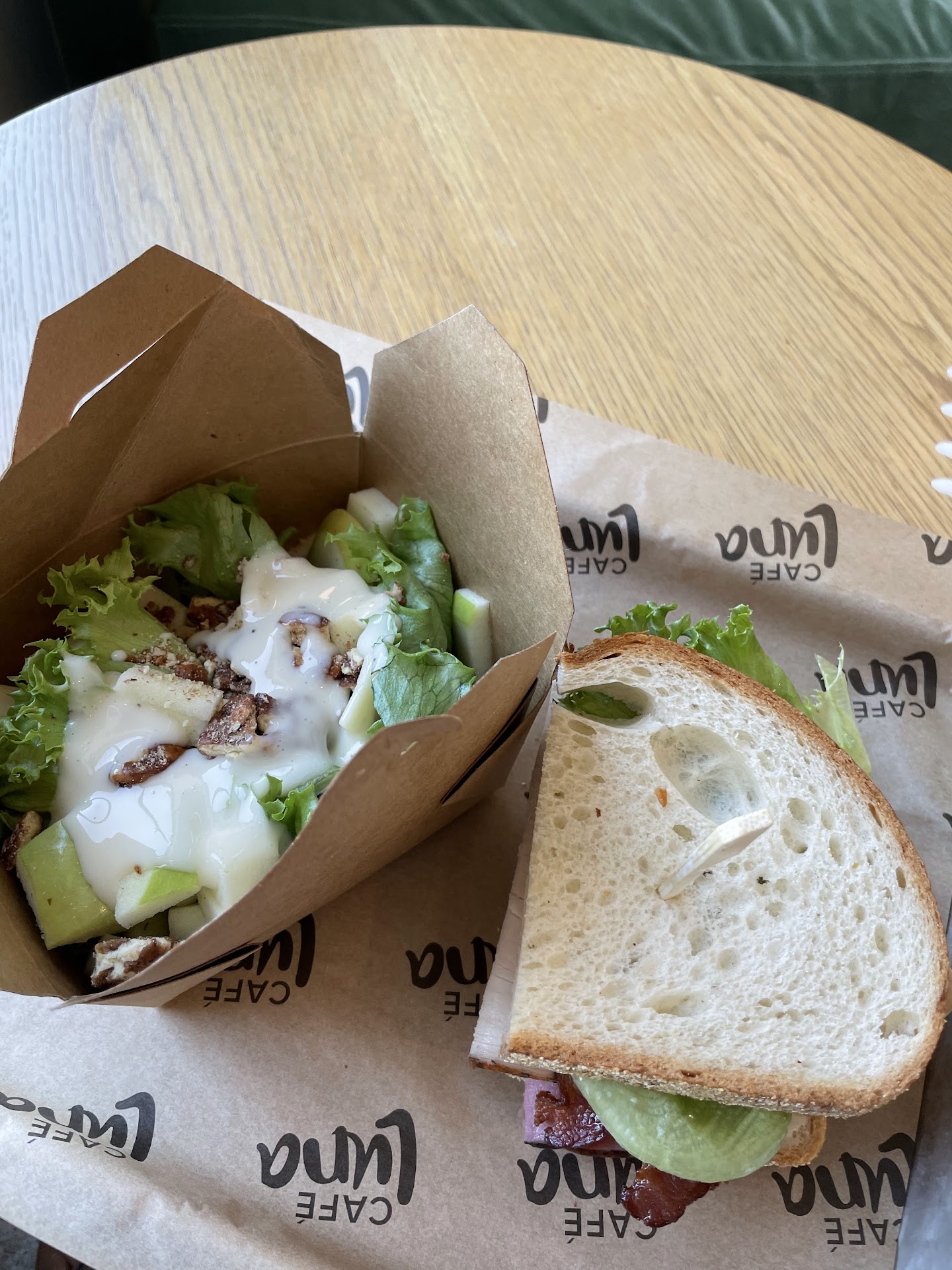 The menu is extensive and filled with salads, sandwiches, smoothies, and toasts. They have an impressive selection. My favorite is their combo deal, where you can get half a salad and half a sandwich for $13 — you can’t beat that. The food is pretty good, but it can sometimes be inconsistent. I don’t love their coffee, but that’s mainly because I’m a dark roast person, and they don’t offer that. At $4 for a cup of hot coffee (for black coffee, this is a bit over the average cost), I’d expect to have a few more options in terms of the style.