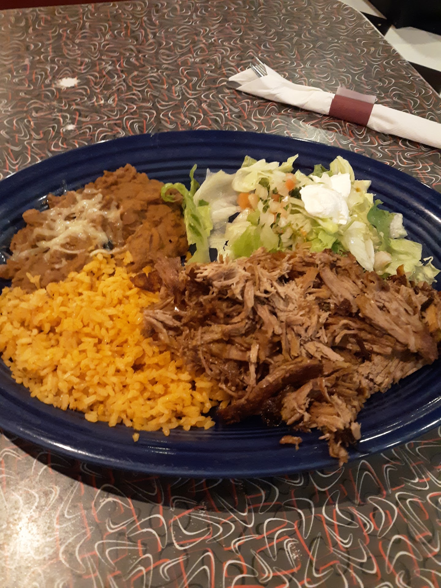 Carnitas were tasty and as expected from a flavor standpoint. Salsa: True to the El Rodeo tradition Rice: tasty, fluffy, not too oilly. Beans: properly Seasoned.