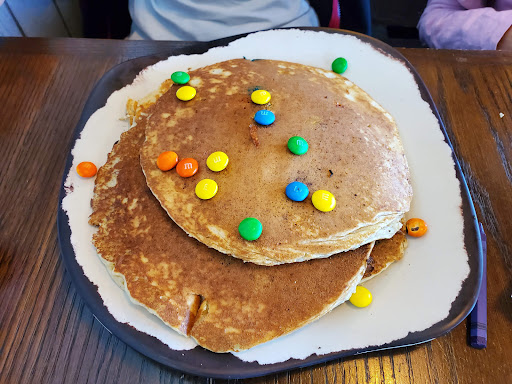 They have good selection of brunch food items. We had "make your own omelet" with the side of potatoes and substituted the english muffins with their small size pancakes. Their rainbow pancake is always a big hit with kids. It is a large pancake stuffed with a lot of M&M.