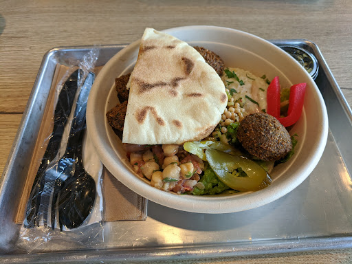 Read moreI've had the opportunity to enjoy Falafill's food twice. The first time I was passing through Schaumburg and wanted some quick takeout. I saw their sign as I was driving and decided to try it out. It turns out it was their grand opening. I ordered a chicken bowl and thought it tasted very fresh and flavorful. This past weekend I had my son with me who has never really experienced this style of food. He ordered a falafel wrap and loved it. This really surprised me as he's usually "Mr PB&J" or "Mr Mac-N-Cheese". He even asked me this morning at breakfast if we could get takeout from there tonight. I ordered a falafel bowl with baba ghanouj, chick-fava, spicy zhoug and couscous and thought it was delicious. I had to ask what the bright pink vegetables were and found out they are pickled turnips. I've never had a turnip in my life and didn't think I would like them but these were very tasty. We also ordered the pomegranate-hibiscus and lemon-mint drinks which both had a very nice flavor. The pomegranate drink was much less tart than straight pomegranate juice and smelled 'flowery'. The lemon drink had a very pronounced mint taste on top of the lemon. I'm not usually a big fan of either lemon or mint individually, but this combination balanced the two flavors nicely and I would consider ordering it again.