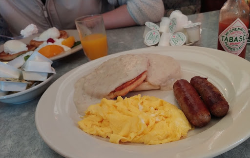 We ordered an egg, sausage, and pancakes for my son. The scrambled egg was literally tasteless, and the hash browns were soggy and tasted awful. The sausage was a little soft but otherwise fine, and the pancakes oddly tasted a bit like yellow cake rather than pancake, but were generally good.