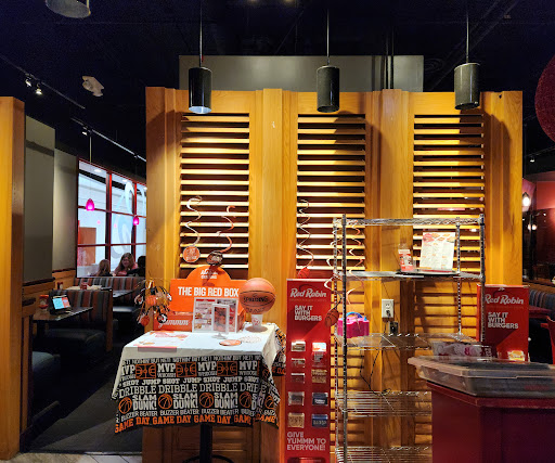 Read moreThis is one of those times when the right server is all the difference. We tried another Red Robin location and was terribly disappointed. Today was a complete 180°. Jordan was our server and was great. She told us about a promotion that got us a free appetizer. The twisty mozzarella sticks were fine mozzarella sticks. The burgers and Wraps were the star of our show. Here's a pro tip: Red Robin will do any of their burgers as a grilled chicken breast, crisy fried chicken breast, turkey burger or vegan patty at no additional charge. If you want an Impossible Patty, it is a $3.50 up charge. You can also get the burger as a wrap, or a lettuce wrap. Watching my carb intake, I went wrap route. Each burger comes with sides of French fries , sweet potato fries, or garlic fries. I went for the up charge of Garlic Parmesan Steamed Broccoli. The wrap was savory and cheesy, I did not miss the bun at all. The Garlic Parmesan Broccoli was tender and nutty. All the sides have free refills and I definitely took an extra helping of broccoli. My friends got the Southern Charm burger (cheddar BBQ sauce, bacon, and sautéed onions) and the Royal Red Robin (sunny side up egg, bacon +avocado at an up charge). Both were on point. We treated ourselves to desert of Shortbread Chocolate Souffle cake. The cake had crispy edges and a gooey center, topped with...