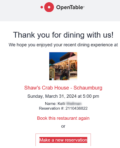 Last but not least, Shaw's found time to cancel our reservation. Of course we get notified when the reservation changes. It's like one last insult. It was this action that brought me to create this review. I dislike reviews because peoples personal experiences are so varied and unique. With the few reviews I've written, I try to highlight the best of whatever a place has to offer. If your a person that is looking for the same, my review may have helped in some small way. That is satisfying, especially when its ma and pa little brick and mortar business. Shaw's cancelling the reservation?! Why? How does that help the Customer? How does that say we're sorry, how can we fix this? Right, it doesn't. It's a sharp reminder of the horrible experience delivered directly to the Customer (and all of their friends and family). How reckless and irresponsible of the person who took this action.