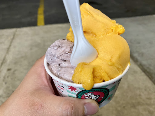 It’s located in a strip mall with plenty of parking. They do have seating inside but again the whole neighborhood was using them. They have seating outside and that’s where we sat to get away from the crowd. The service is hard to rate. When people stopped telling them their whole life story, we were able to try some samples and place our orders. That service was very quick and attentive. Prices were fair. They have a lot of unique flavors. We decided to get 2 scoops per person. We got the carrot mango Italian ice , raspberry rhapsody, espresso Oreo, and ube chai. The carrot mango was the best. I certainly liked the combined flavors and the taste was refreshing. The raspberry rhapsody was delish. Expresso Oreo had nice chunks of Oreo and the coffee flavor was very noticeable. Ube chai was okay. The flavor was more subtle. This is about a 4.5. It’s...