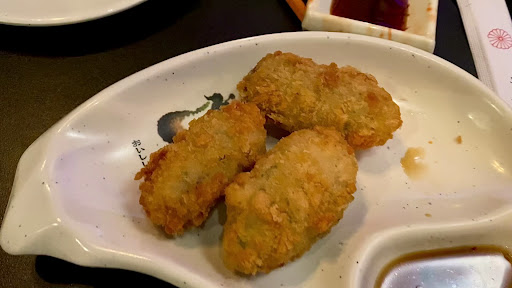 -shrimp lollipop 5/5 -harumaki 5/5 -spring roll with shrimp in it -Softshell crab 3/5 -jalapeño bomb 5/5 -fried oysters 5/5 -Nigiri Tuna 3/5 White tuna 5/5 Salmon 5/5 Red snapper 5/5 favorite Sea bass 5/5 favorite Smoked salmon 5/5 Eel 4/5 Shrimp 5/5 Mackerel 3/5 Squid ⅖ - too chewy Crab 4/5 Scallop 5/5 -Angel hair roll 5/5 - i liked the apple addition to it. Nice little crunch/sweetness -fire phoenix roll ⅘ - a little too much cream cheese -mango tango roll - ⅘ - same as above. Cream cheese can fill you up faster -mochi (mango, green tea) 5/5 - mango has a stronger flavor...