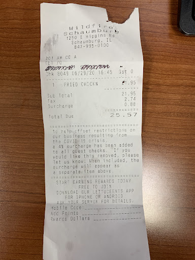 My only issue is the Democratic Party has been successful in almost completely destroying the restaurant industry. It's a bad time to operate a restaurant today. The cost of operating a restaurant today has sky rocketed. For a family of four the price for dinner cost us $280.00. We are almost at the point where the price does not justify the dinner. Most Americans have already been priced out of family dinners at restaurants. A sad state for America. But that is not the fault of Wildfire; it's the fault of our government politicians.
