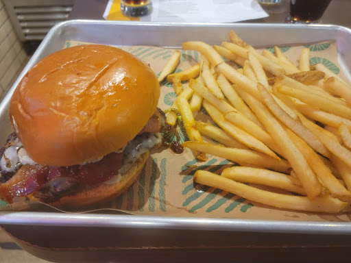 The Bacon Brussel Sprout Cheeseburger and fries were amazing!!! The bacon was nice and crispy. The Brussel sprouts were cooked nicely and had a bit of a crunch. There was a nice garlic aoli sauce on the burger that helped brought everything together. The fries were crispy and addicting.
