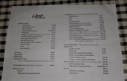Read moreEat somewhere else but drink here for the outdoor atmosphere. Fun time. Steak tacos and steak nachos were a flop. Meat seemed to be some processed "steak" with globs of fat and non steak texture. Grilled cheese was ok but super greasy but flavor and price was there. There's a lot more on the menu but what we all had was not good. It's possible the rest of the menu was dynamite but I won't be willing to try. Servers were friendly and worked hard to keep their tables serviced and they were very attentive. Other customers were friendly and everyone hanging at tables in the lot for live bands was quaint and fun. Visit Greg's Place....