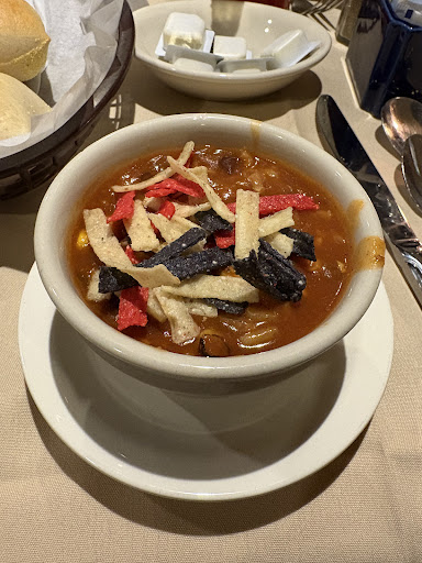 We stopped here because I know they have gluten free food which was amazing. They have these dinner rolls that are warmed up and taste like normal rolls. I would recommend dressing on the side because while delicious it was swimming in it. My friend's meal was cold. She had the soup which there isn't a gf option so I can't comment. She had fried perch and chicken and said it was cold and her buns weren't warmed. Lol. I got the filet mignon and baked potato. You get ice cream for dessert. Did someone say peppermint. Yum. I would definitely go back, but my friend would not.