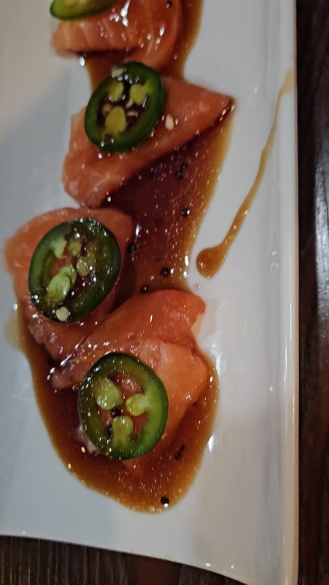 The yellowtail and salmon jalepeno amuse was the most incredible fish to lay on my tongue but it could not save the review as the "fried rice" from the all you can eat hibachi was only steamed rice with seasoning, not a single grain had a crisp.