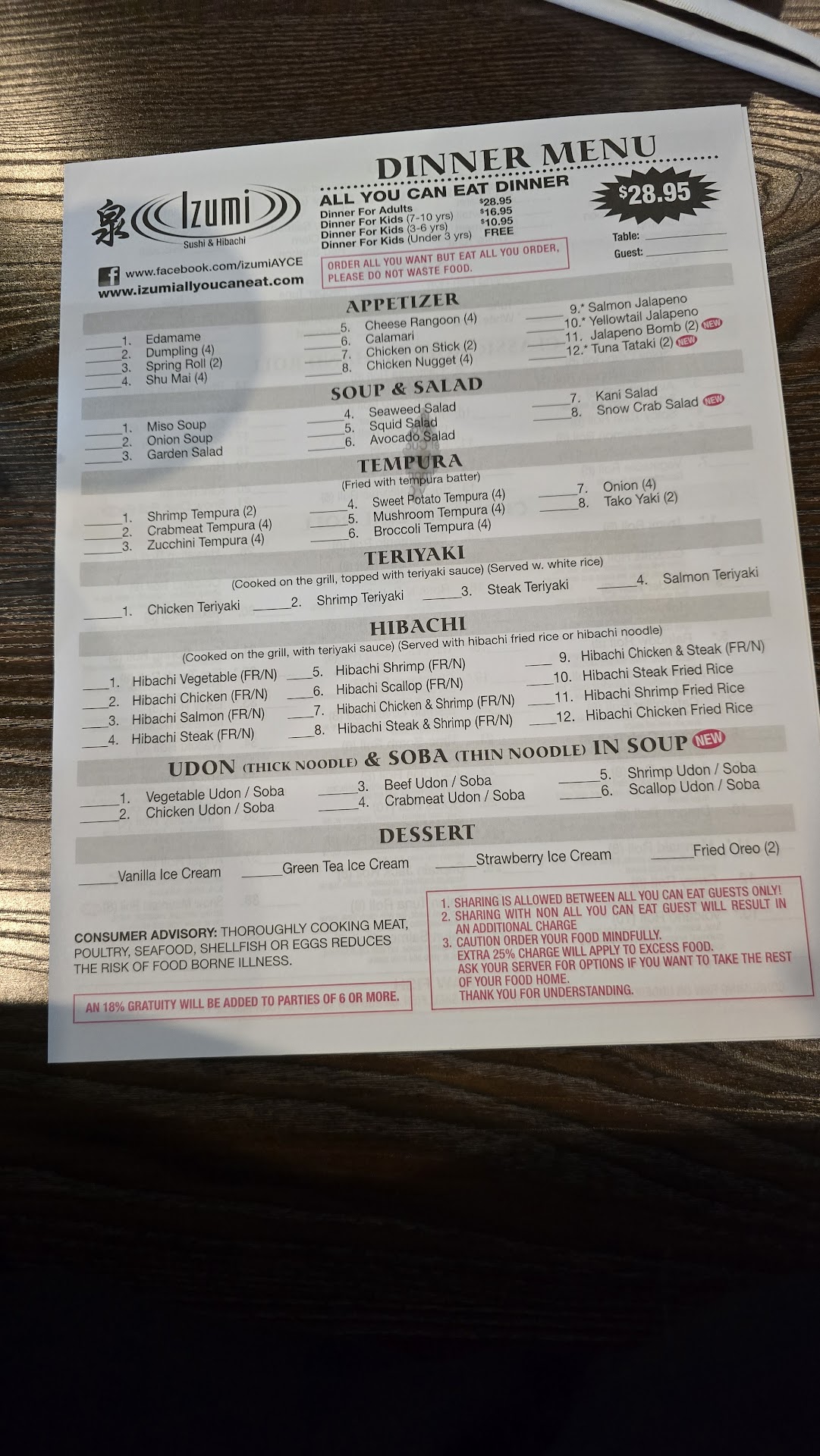 Read moreThis is an experience I had with Izumi Sushi Hibachi All You Can Eat (AYCE); second time here but this is the first time I’m doing AYCE vs ordering.