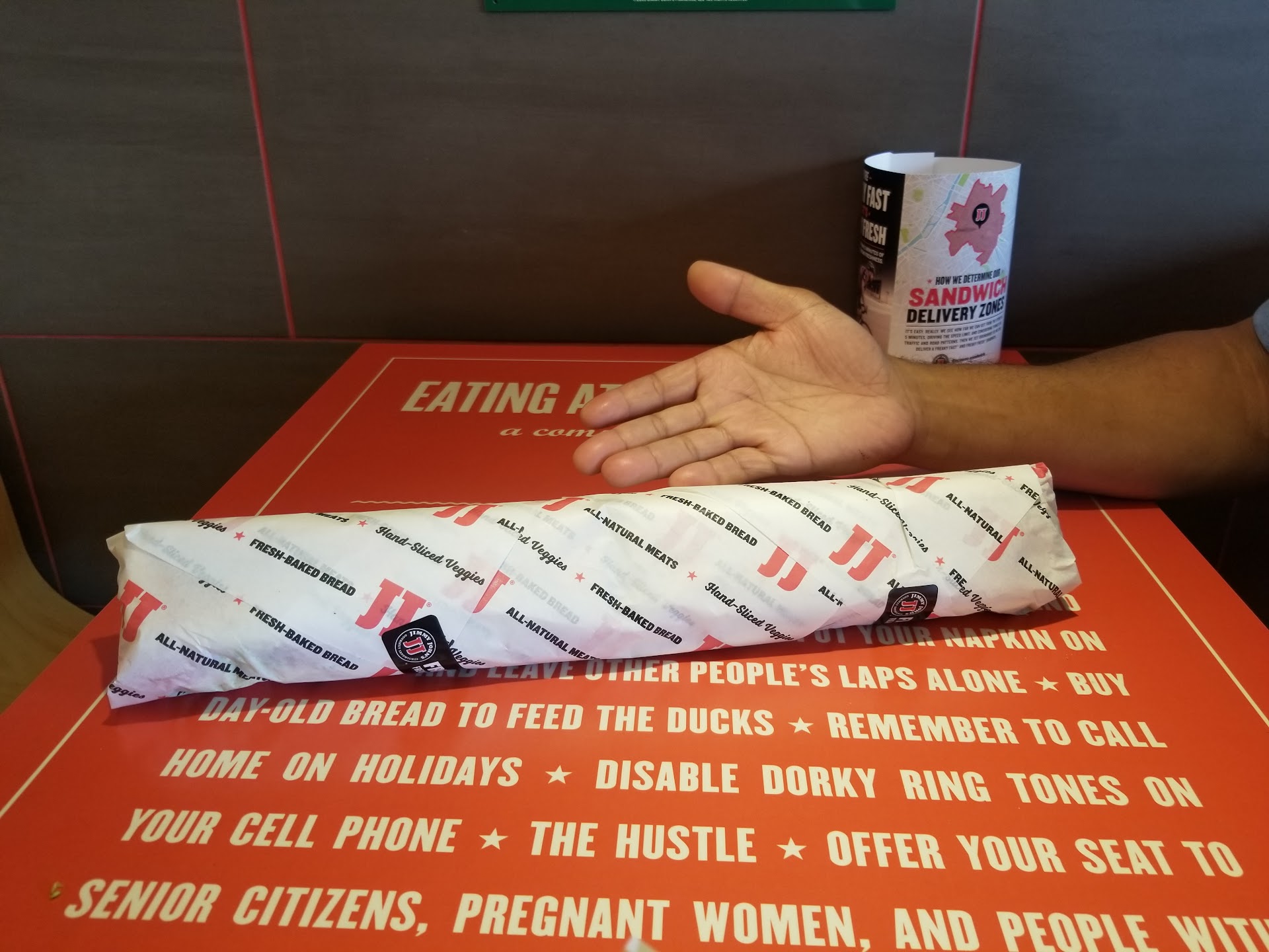 Read moreNot freaky fast like the add. Placed an online order, waited 15 minutes before entering the store, waited another 17 minutes before it was ready. A classic sandwich and a cookie. One of the people went out on a delivery with two small bags and a soda. I saw 5 other people working. My sandwich was made with my extra ingredients like I asked but it seems like less meat on the sandwich now. Smaller bread, smaller meat = smaller sandwich and over a 30 minute wait. The kid taking orders at the cash register was friendly but he kept yawning, mouth opened not covering it most of the time looking directly at the customers and food. Not excusing himself or wiping his hands..... the only reason I'm giving 3 stars is it still has the...