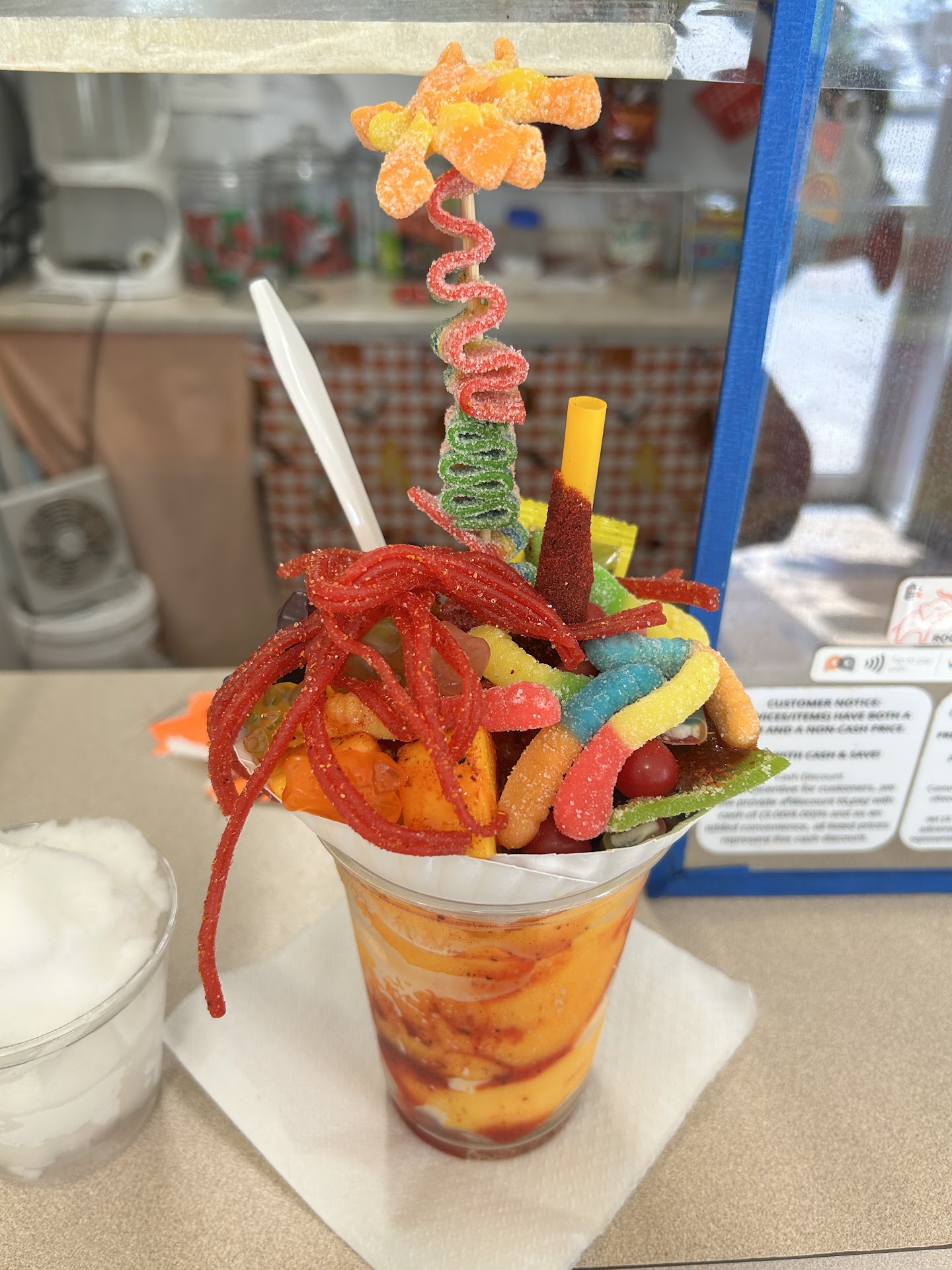 Read moreSUPER EXPENSIVE!! 4 items and 2 snack size chips paid almost 30 dollars!!! Corn in a cup $4.25 if you want hot Cheetos +$1.50 per cup. She sells bags of chips for $2.00. You only get sprinkles of hot Cheetos lol! she should just sell the bag to the customer. Taste is alright. We...