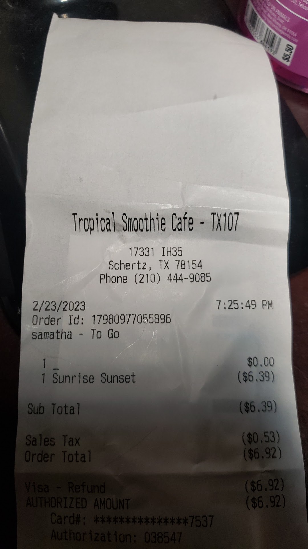 Ā Ā Ā Read moreAmaya and Sophia are unfriendly,unwelcoming,unprofessional and rude. We walked in and weren't greeted or acknowledged. When Amaya finally did she made it seem like we were bothering her. When our drinks were ready she placed them on the side counter and said "here. And threw our straws." We walked out and I tasted my sunrise sunset and it had NO FLAVOR. It tasted like water. I went back inside and told Amaya. She offered to remake it but said "it wouldn't matter because that smoothie doesn't have flavor because pineapple and mango dont taste like nothing". This is my favorite smoothie. I've had it plenty of times. Its not supposed to taste like water. I requested a refund. She whispered to Sophia and Sophia loudly said "SO! I DONT CARE IF SHE DOESNT LIKE IT!". I calmy said "excuse me! Would you like to have this conversation with me?" She rolled her eyes,scuffed and turned towards me. With an attitude Says they dont issue refunds and offers me a free smoothie coupon for another time. I told her I'd rather have a refund. She then tells me "we are like all other restaurants. Theres nothing we do if you don't like your food. Its not our fault you don't like it. We don't issue refunds!" She stormed off and got an other employee,Reagan,to issue me a refund. Reagan was so calm,kind and had amazing customer service. She handled the situation with grace and got me squared away. She was apologetic and tried to avoid Sohpia's attitude which continued as I left. She was making a scene and pointing at me as I was leaving. So disrespectful and unprofessional and childish.