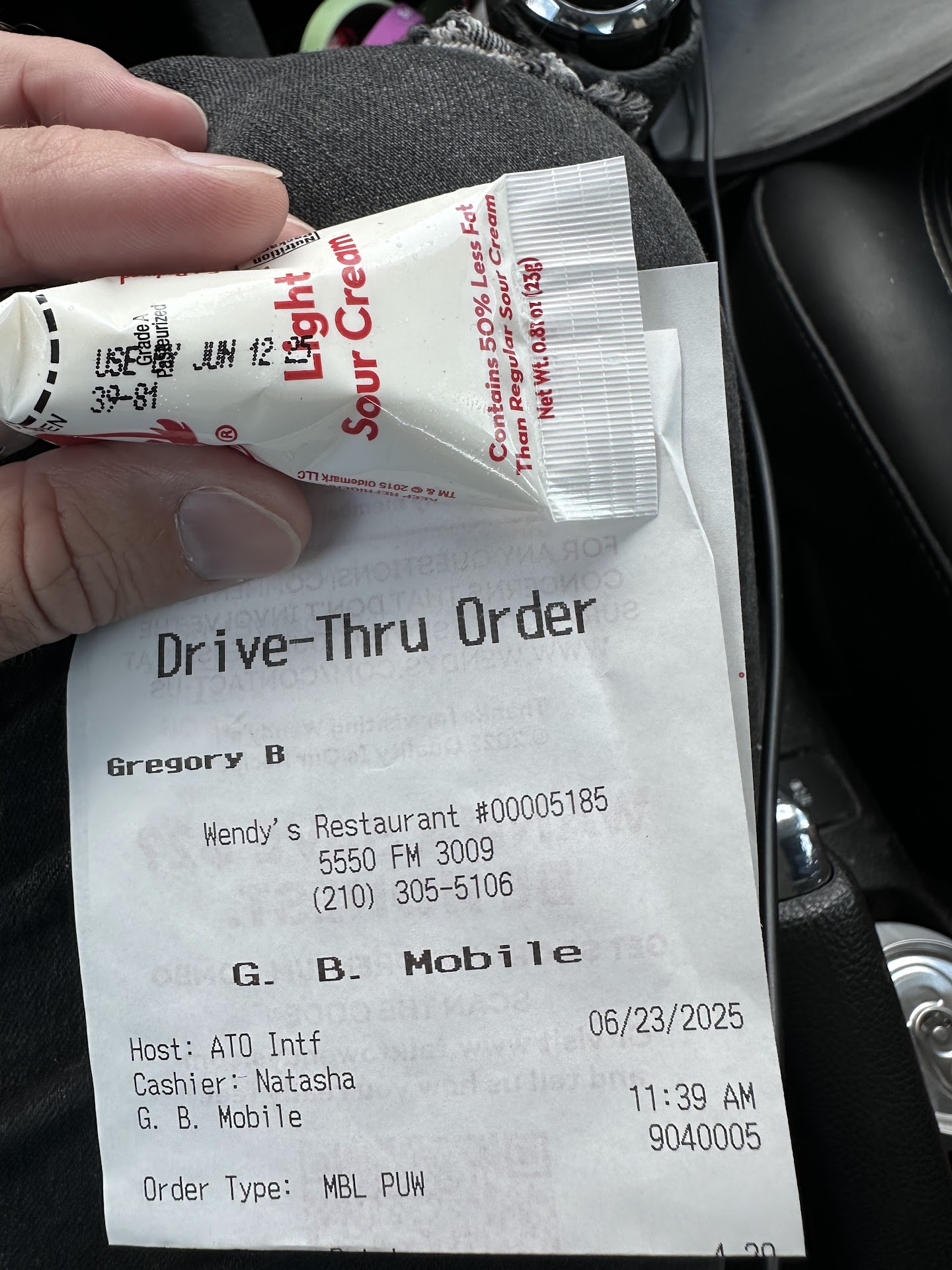 Read moreSo after we ordered through door dash and was brought a completely different family’s order and called up to this Wendy’s to let them know. They were aware they gave us the wrong order and the lady said if i come up there they’ll exchange so after informing her that i ordered through door dash she preceded to say there’s nothing she can do. So after the phone was handed to my wife the lady’s attitude was completely different after my wife informed her that was false there was something she could do because this is the third time it’s happened. My wife then asked to speak to the manager and the lady said she was in fact the manager and “that’s that” at the end of the day we are all no matter what career field we are in are in the customer service business and the level of customer service that was given today was beneath dirt poor. Was my wife very upset absolutely, this is something that keeps happening. Yes we choose to still get from here on the times we do decide not to cook but that doesn’t mean i have to travel to another one further away to get decent customer service and actually what i pay for. Tonight i paid $41 and some change and received $20 bucks at the most and I’m stretching that to be nice because two 4 for $4 meals a chili and and double burger is hardly even $20 worth let alone the $41 i was charged. And that’s just this time. Completely...
