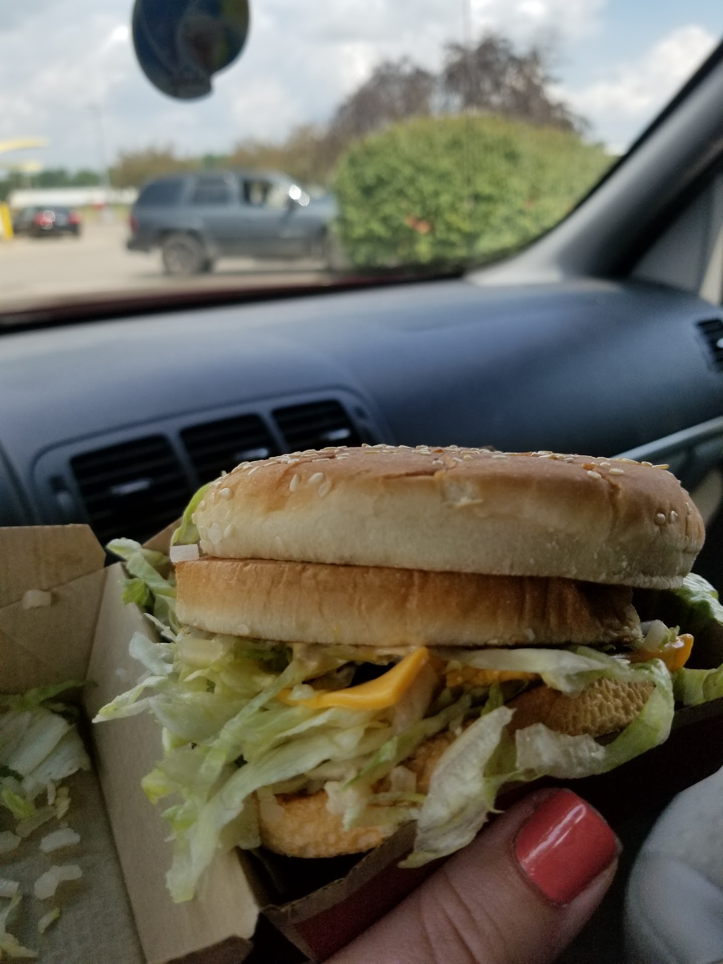 BUT. When we pulled over to check our food, half of it was missing. So I ran inside, kids in tow, to get the missing food. We stood in that lobby for over 20 minutes. Waiting for a couple order of fries. Flies were buzzing about everywhere, everything was dirty and empty. No ice, no sprite, no napkins, no ketchup, sticky floors and dirty counters.