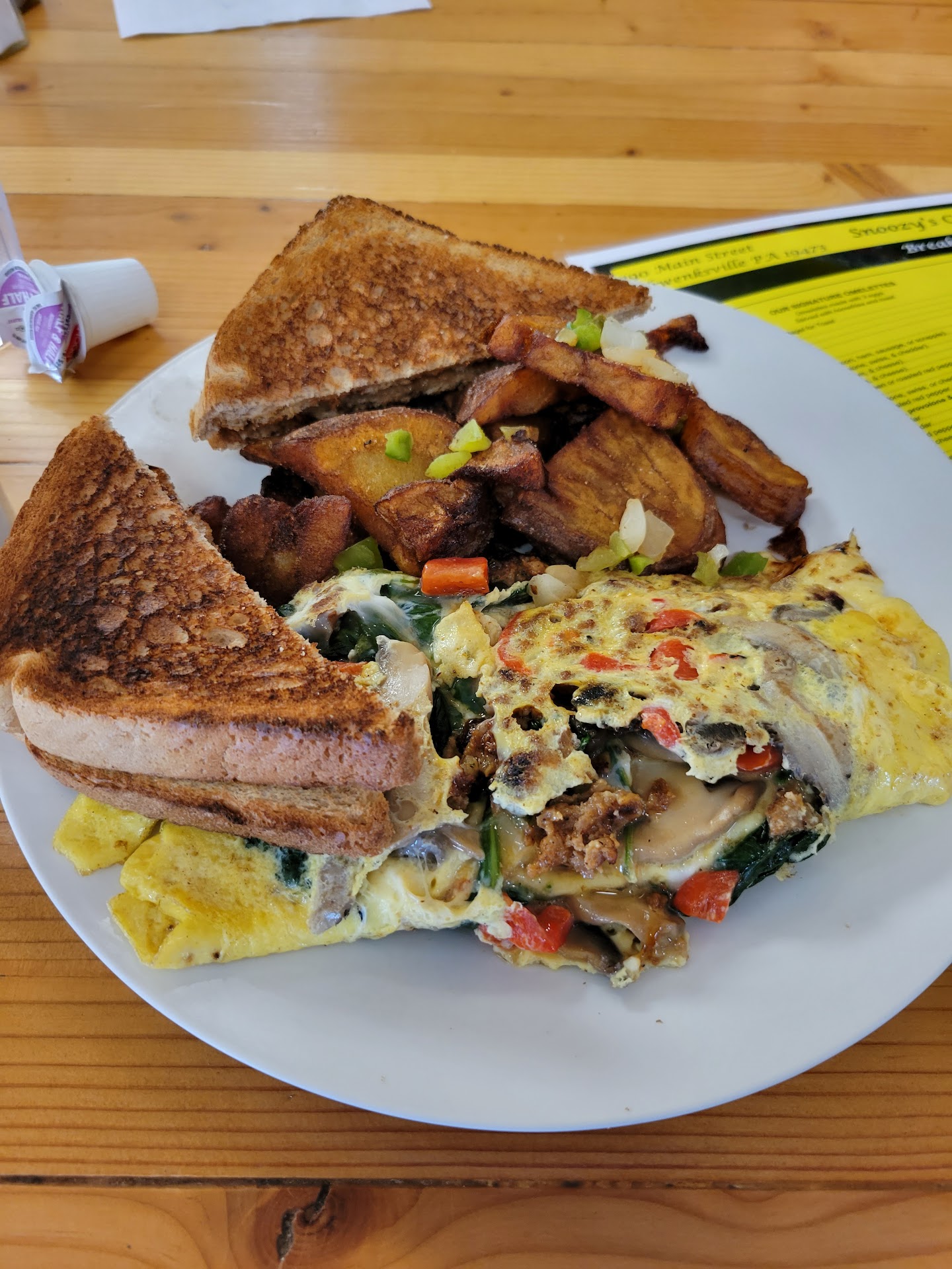 Read moreI recently visited Snoozy's in Schwenksville, PA and had an amazing breakfast. I ordered over medium eggs, home fries, soft bacon, and scrapple, and every dish was cooked to perfection. The eggs were just the right amount of runny, the home fries were crispy on the outside and tender on the inside, and the bacon and scrapple were deliciously flavorful.