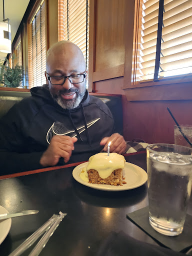 Read moreThis was a first time visit. We went for lunch. Our window booth in the large dining area was perfect. Our waitress was excellent. My friend enjoyed her rueben, and she was pleased that the corned beef was very lean, as she can't handle any fat. I had to order a salad because I have numerous dietary restrictions. I was overjoyed because this salad was described as containing ingredients I can eat. It was the roasted chicken salad. Unfortunately, the salad was sadly lacking in those ingredients. It was supposed to have dates in it. There was one small slice of a date. There was very little goat cheese. (It's the only cheese I am permitted to eat.) There were also supposed to be raspberries. There were exactly three. The other ingredients were fresh, but I was looking forward to having ingredients that are not widely offered in salads. The chicken in the salad was ample, but not flavorful. My advice to others is, "Do not order a salad." Or, alternatively, tell your server you read a review about salad ingedients being skimpy, so you expect to see generous amounts of all the ingredients. I can eat no grains, dairy, nightshades, and very little sugar, so the salads were the only menu items that somewhat worked. This particular salad, minus the cornbread, worked best. We were celebrating my friend's birthday. At least it was a good experience for her. The carrot cake was enough for 3 people. I only took a small bite, and there was no way my friend could eat it all, so she took a large amount home. It was exceptionally good...