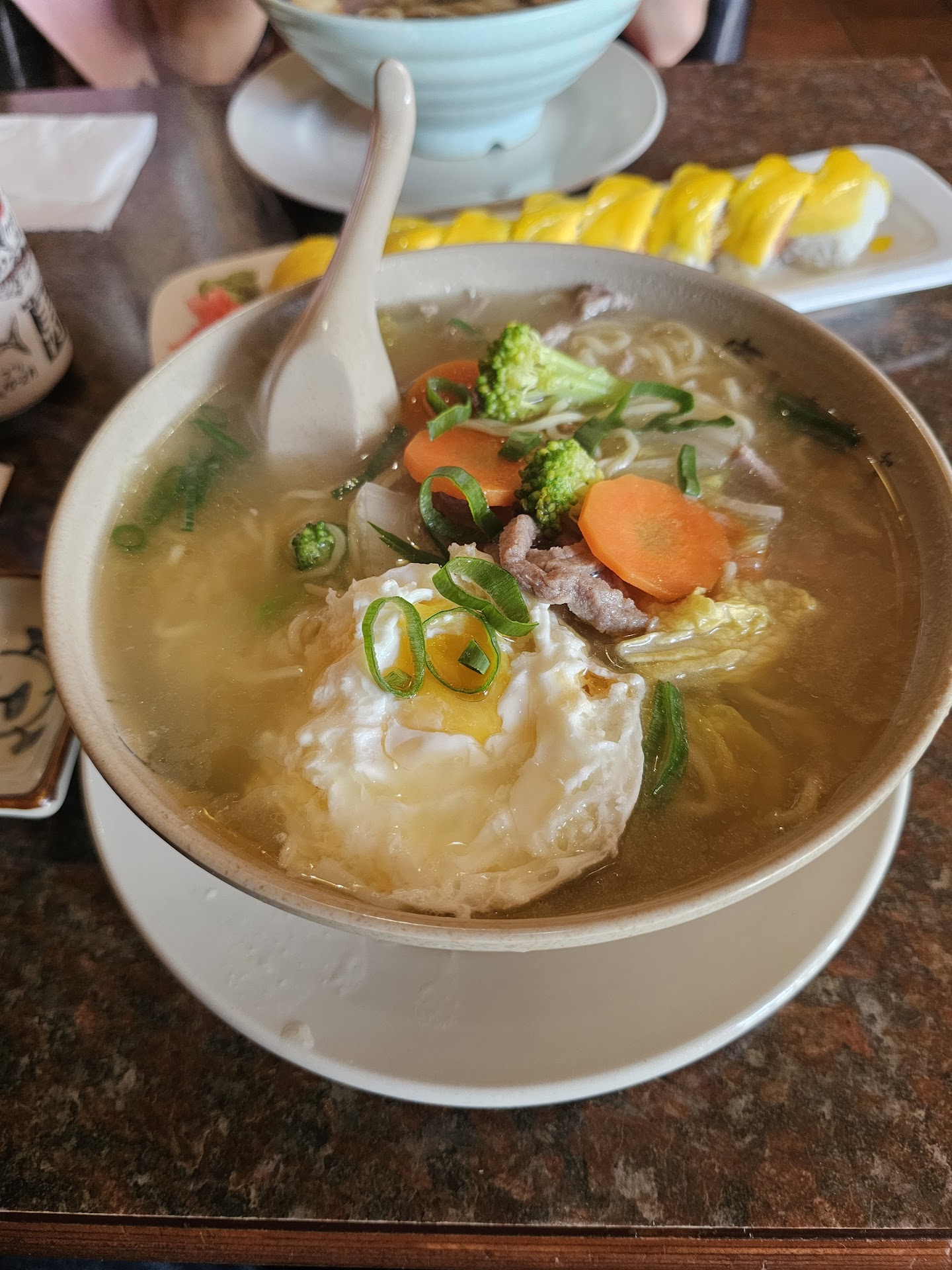 In addition to sushi they also have hot offerings. These are good but not to the same level as the sushi. The beef negamaki is probably the best. The chicken dishes are okay but the chicken seems like it comes pre-packaged rather than being cooked their. Think dining hall chicken.