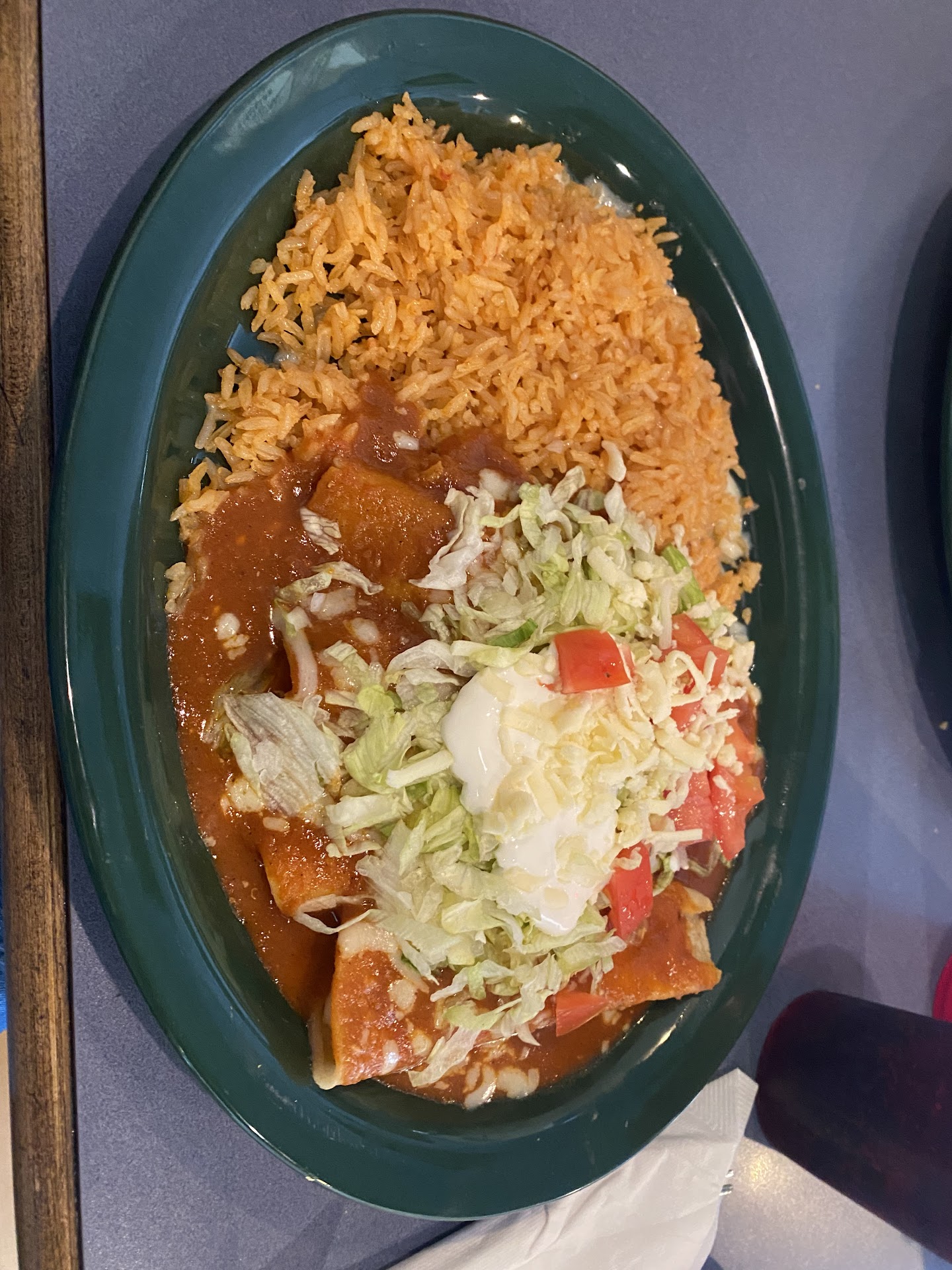 Food was ok. Portions were modest for the price. Service was mid (had to ask for more water). Margaritas were weak (I had half a pitcher with little taste of tequila and zero effects). Beer was served in a big frosted mug, so that was nice. Chips were not good. Salsa was watery.
