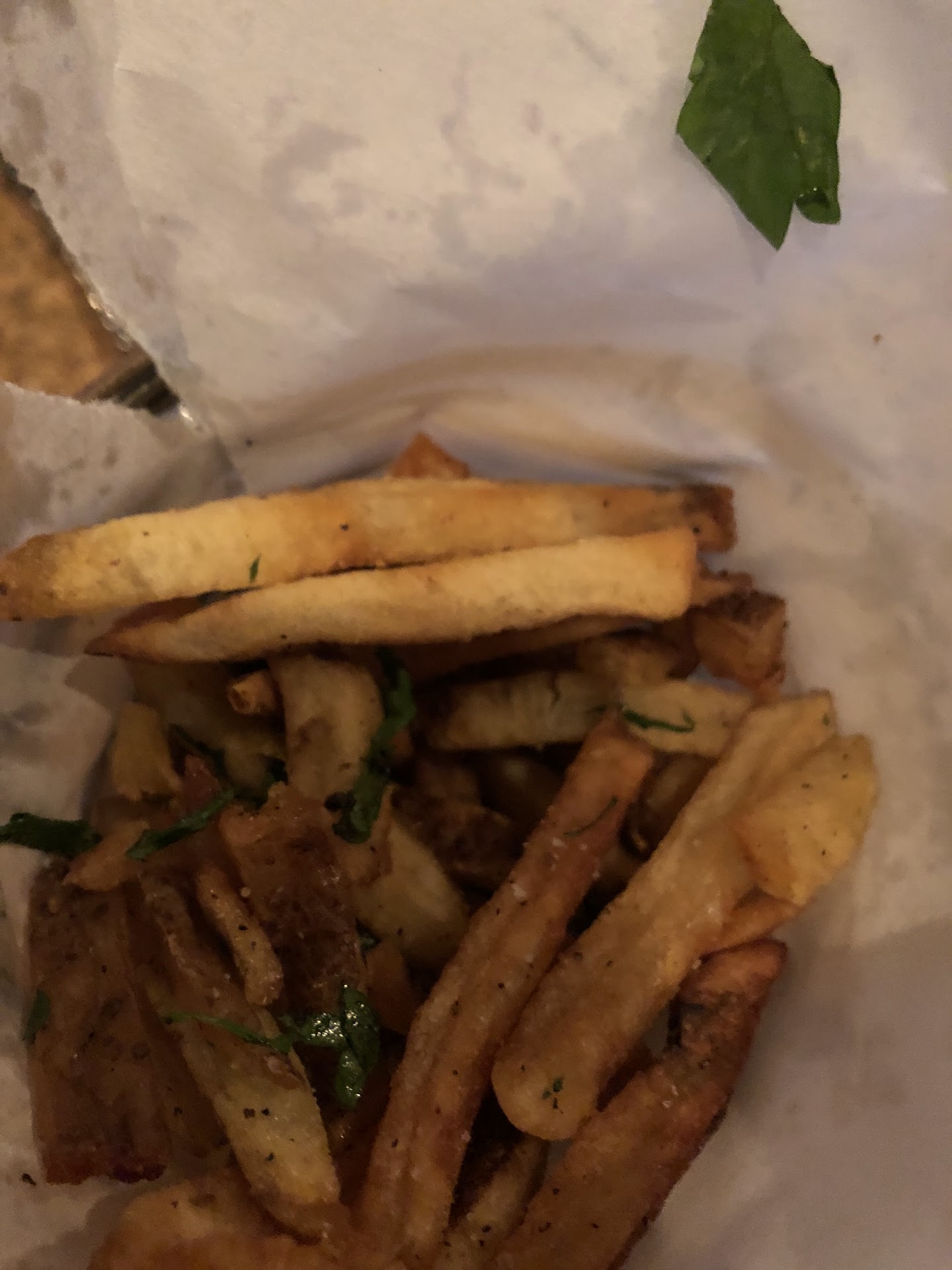 The restaurant is very bright and welcoming but unfortunately that was the highlight of my experience. The food was very lackluster. Polenta fries were far too salty to be edible. Caesar salad was adequate (nothing mind blowing), shucked oysters were ridden with shell fragments, and the steak frites were underwhelming. Steak was very clearly a cheap cut of meat, quite grissel-ey and tough despite being cooked medium rare. The pork loin was probably the best plate of food- pork was tender but accompaniments left a lot to be desired. For the upscale vibe Oro puts out, the quality of food did NOT match. Service was also very mediocre. Our server tended to our table infrequently and at the end of the meal, was left wondering if she’d return to deliver the check (waited 15 min for her to reappear after she asked if we were ordering dessert…we were not. We did not explicitly ask for the check, but an experienced server would have known to bring it out as we had concluded our dining experience).