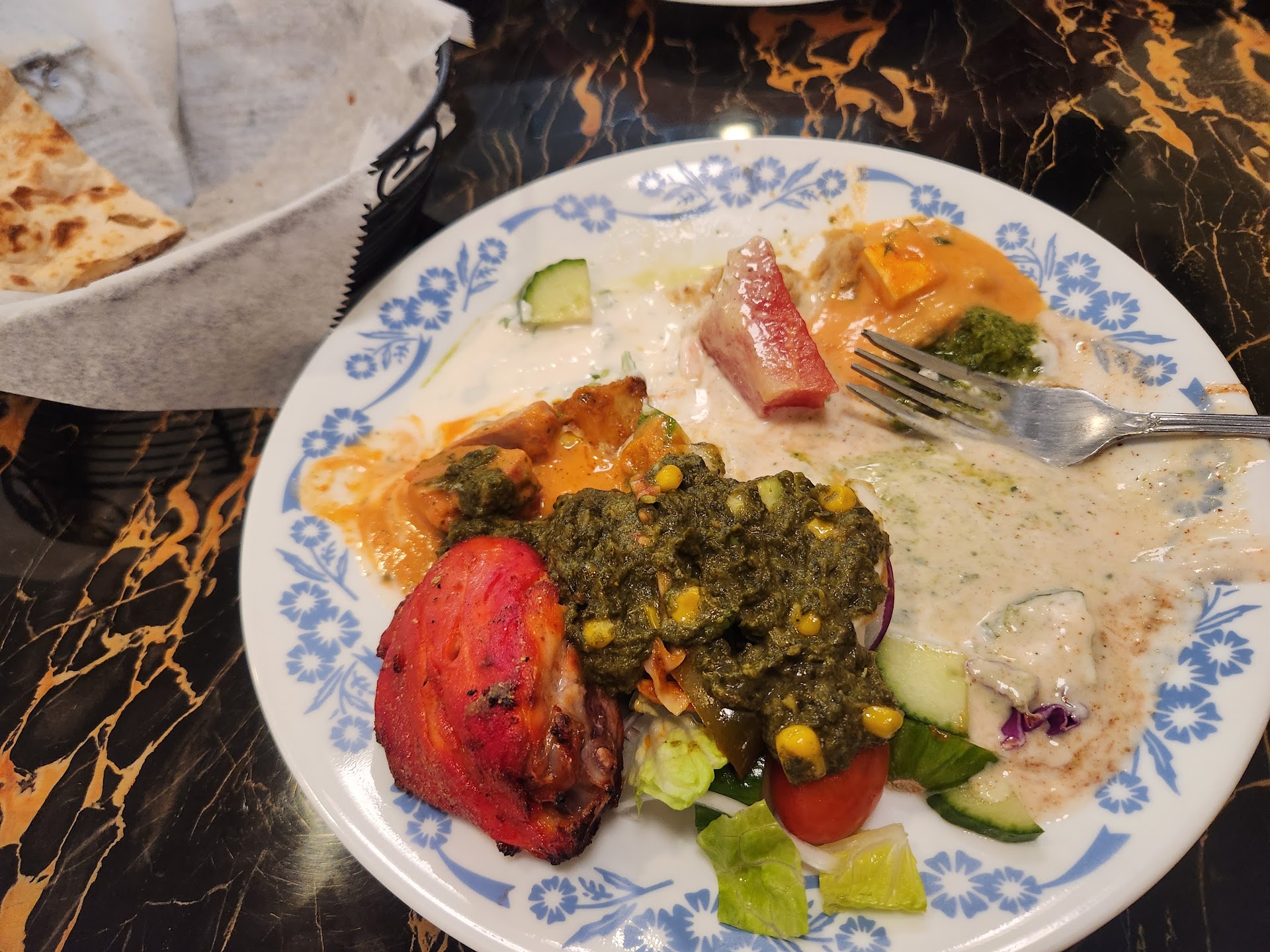 Read moreVery nice atmosphere, absolutely packed to the brim on arrival which to me is always a good sign. The prices were reasonable. The decor was lovely and the wait staff were very fast and efficient, but their table side manner left a lot to be desired. Reaching over my plate banging everything down on the table, very sloppy. As for the food, well........I ordered the lamb Biryani and whilst the taste was good, it did not taste like a biryani to me, it was more like a pilau rice. It even looked like pilau rice. Don’t get me wrong, as pilau rice is just as delicious, but the flavour isn’t the same. The onion baji wasn’t quite right and tasted more like pakora. My friend’s dish which I believe was the tikka masala didn’t taste at all good to me. My friend wasn’t impressed, but because she only likes chicken beast meat she didn’t want to complain. We have decided this place may be good to come back to for the lunch buffet which is cheap, you can try a bit of everything and feel like you received true value for money. As this is the third Indian restaurant I’ve eaten at in eleven days (celebrating my birthday), it comes in third place for me. I would say that for the untrained palate you will enjoy the food as the flavor is...
