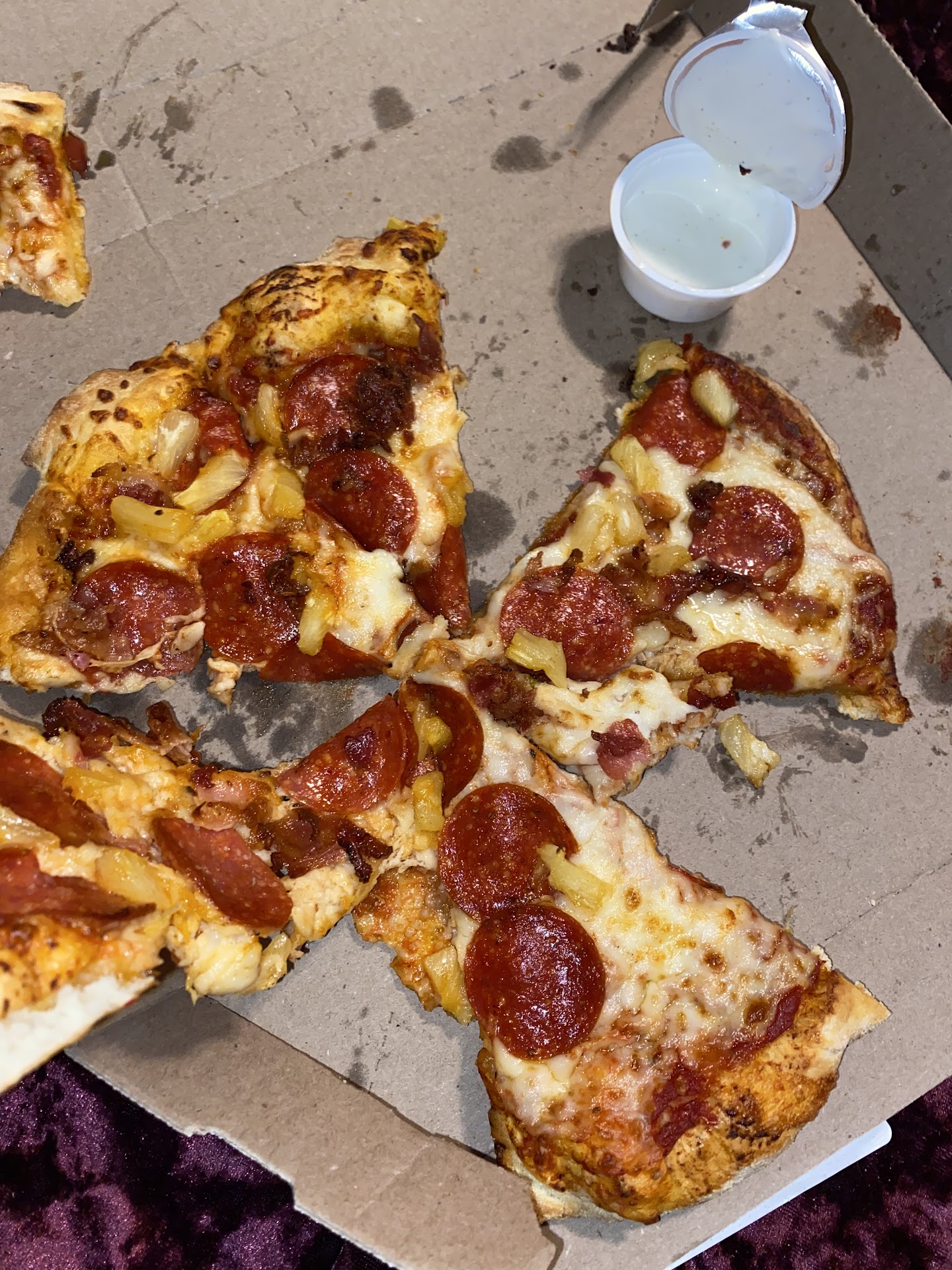 Ā Ā Ā Read moreFinally realized why my cheese pizza sometimes tastes like bacon. This might sound like a dramatic picky eater story but due to being vegetarian bacon makes me throw up whenever I eat it, and Iāve been throwing up randomly when I ordered it. They need to not get a certain amount waste in their treys, so they will take cheese from the treys eand dump it & whatever toppings are mixed in, onto the cheese to put on another pizza! Bacon, peppers, anything! THEY DONT CARE! Itās disguisting! And I genuinely liked this pizza so much until the bacon taste started. AND EVER WONDER WHY THE MEDUIM PIZZA YOURE PAYING FOR IS SMALL AND THIN? they will take doughs meant for SMALL pizzas, and stretch them so they donāt have to make more mediums!! The lava cakes are good hopefully as far as I know, but otherwise DISGUISTED. Hopefully they change and care about their customers. Or get some type of consequence for this. Hopefully other locations arenāt the same. Also, donāt request Brent if you want your food on time, he always...