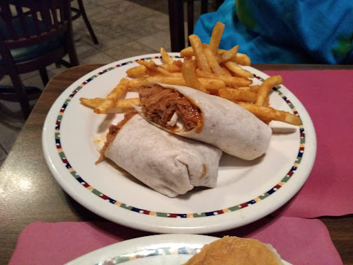 This one's a keeper! Went to use a coupon for $12 off the second entree but the menu is downsized due to the times, so they didn't have the fish dinner I had intended to order. Instead, we decided to forego the coupon and split a full rack of baby back ribs dinner. We were unsure of which bbq sauce we wanted so the server brought us a sample of the 4 choices. They were all good but we really liked the Captain Morgan Sweet. When our meal arrived it was already split up onto 2 platters which was much nicer than an extra plate and having to divvy it up ourselves. The onion rings were nice and crisp with such a sweet onion inside, yummy. The coleslaw was good, too, not dry like I find at a lot of places now, and not runny, delicious. Speaking of delicious, the ribs were scrumptious. I found I liked adding the hot bbq sauce from our samples, so the server brought me more of it. It was truly a delightful meal and for under $30 for two of us. I'll...