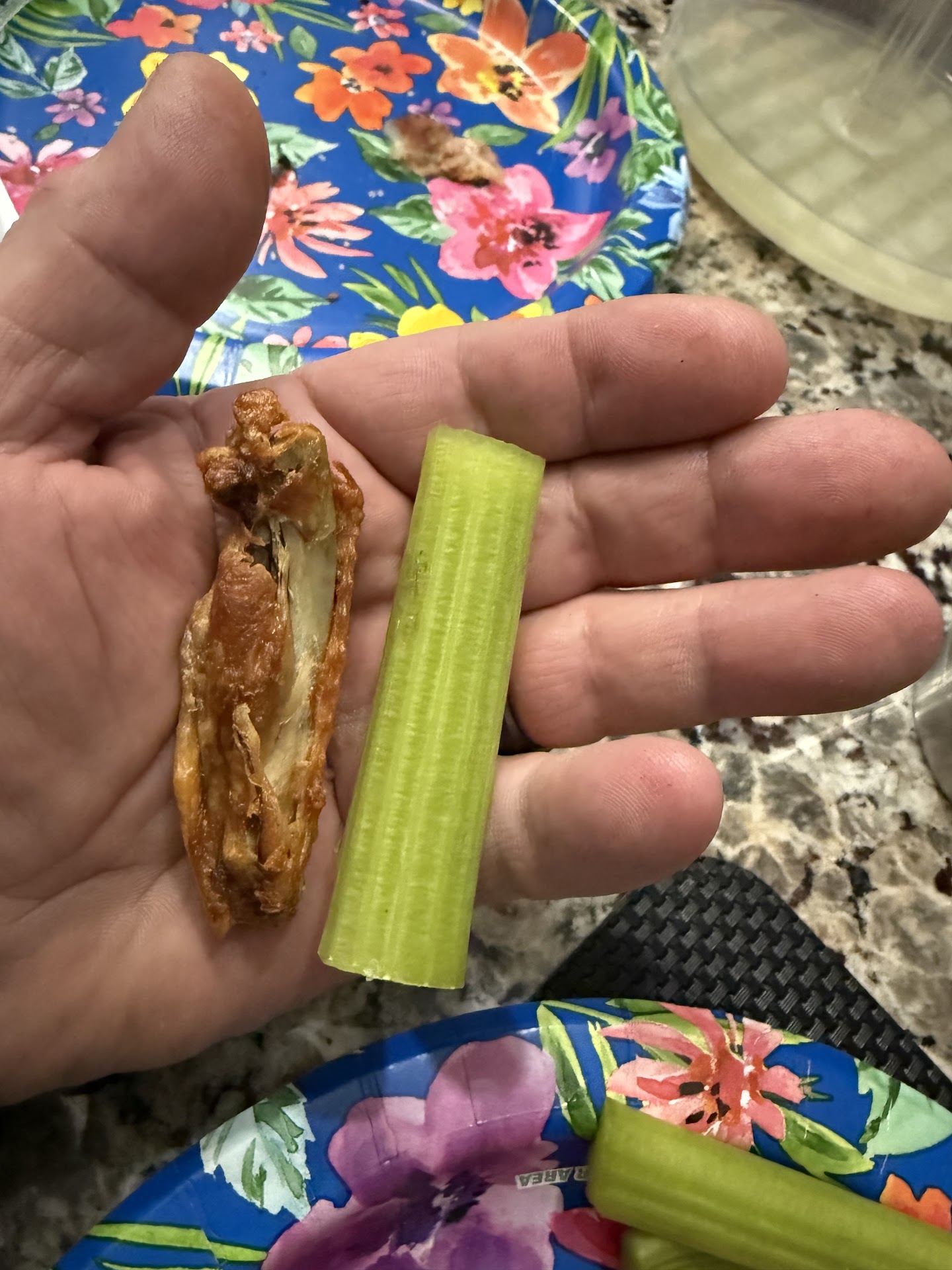 I’m leaving one star because it’s the only way I can leave a review. If this were my business I would never sell anything like this because it would cause more damage than it’s worth. I can understand counting out the wings to turn a profit, but, counting them at this size and charging full price has to be hurting business ant this establishment. I wished I had looked at the food before I left because there is no way I would have taken them. The celery, what few there were, were bigger than the wings. It’s like paying for a Mercedes and getting a Volkswagen. Hopefully the owner sees this and sees what an embarrassment this must be reflecting...