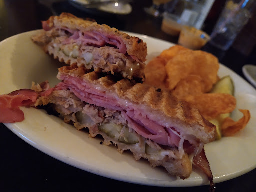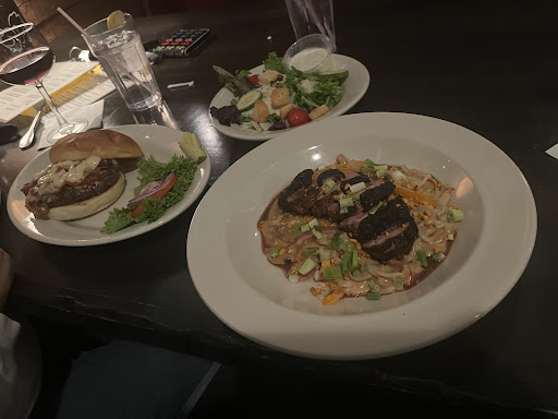 All who got the burgers said they were awesome, and are a solid choice here. You would think "How can you mess up a burger?", but surprisingly many restaurants do, often by overcooking the patty. My reuben was a very good example of the genre, and they did not skimp on the pastrami. Wraps, Ahi tuna tacos, and fried chicken were all crowd pleasers. Those who ordered the chicken pot pie said it was very delicious and creamy, although a little on the small side for a standalone entree, and is best ordered with a salad. The open face sirloin steak sandwich had a good flavor, although mine on this last trip seemed to be 25% gristle and hard to chew. I would probably just get the burger next time. They...
