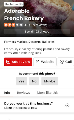 Read moreMy thoughts about the Adorable French Bakery opening a brick and mortar location in Scotts Valley? FINALLY! I love the what they have done with the previous space -lighten and brighten it and make it their own. The fireplace is a cozy welcome on a chilly morning. The outside patio is expansive and feels like you can spread out, but they did not compromise the aesthetics. I have always been a huge fan of the AFBâs baked items- my top 3 recommendations are the cream puff, berry crumble and French tart. They offer more than a few gluten free options and i forget their gluten free. My favorites are the apricot pistachio tart and the raspberry tart. The Swiss cake is delicious, but go for it when you are in a glutinous and indulgent mood-itâs rich! If you are craving a a tasty but not fussy salad come here, the dressing delivers and is it overly ambitious. Recently I enjoyed a satisfying Butternut squash soup and was happily surprised to find they included a little bacon in it. I look forward to what they are...