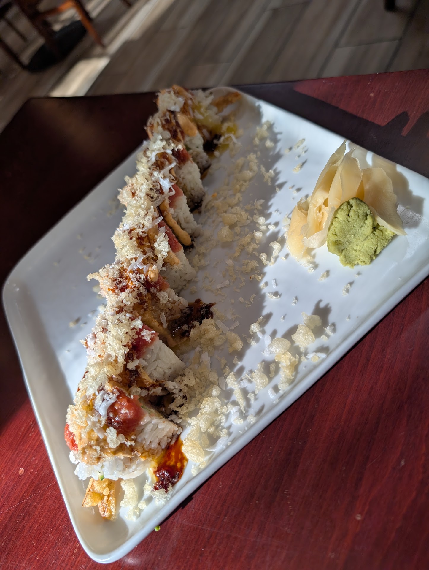 Read moreGive this place a chance and the sushi will speak for itself! My husband and I decided to try it out last night instead of going to one of our favorite sushi spots. We were craving sushi and this spot did not disappoint! FRESH, yummy and creative rolls! Our waiter was super knowledgeable about the menu too and the service was great. There were also other no -sushi items on the menus that I’d like to try in the future. We will definitely be back! They had crayons and coloring paper for our daughter too. But I cannot yet speak to the kiddo menu because our kiddo fell asleep In my arms at dinner b4 ordering so I didn’t even glance at it. But judging from the quality, creativity and freshness of our dinner, I bet the kiddo options are great too!