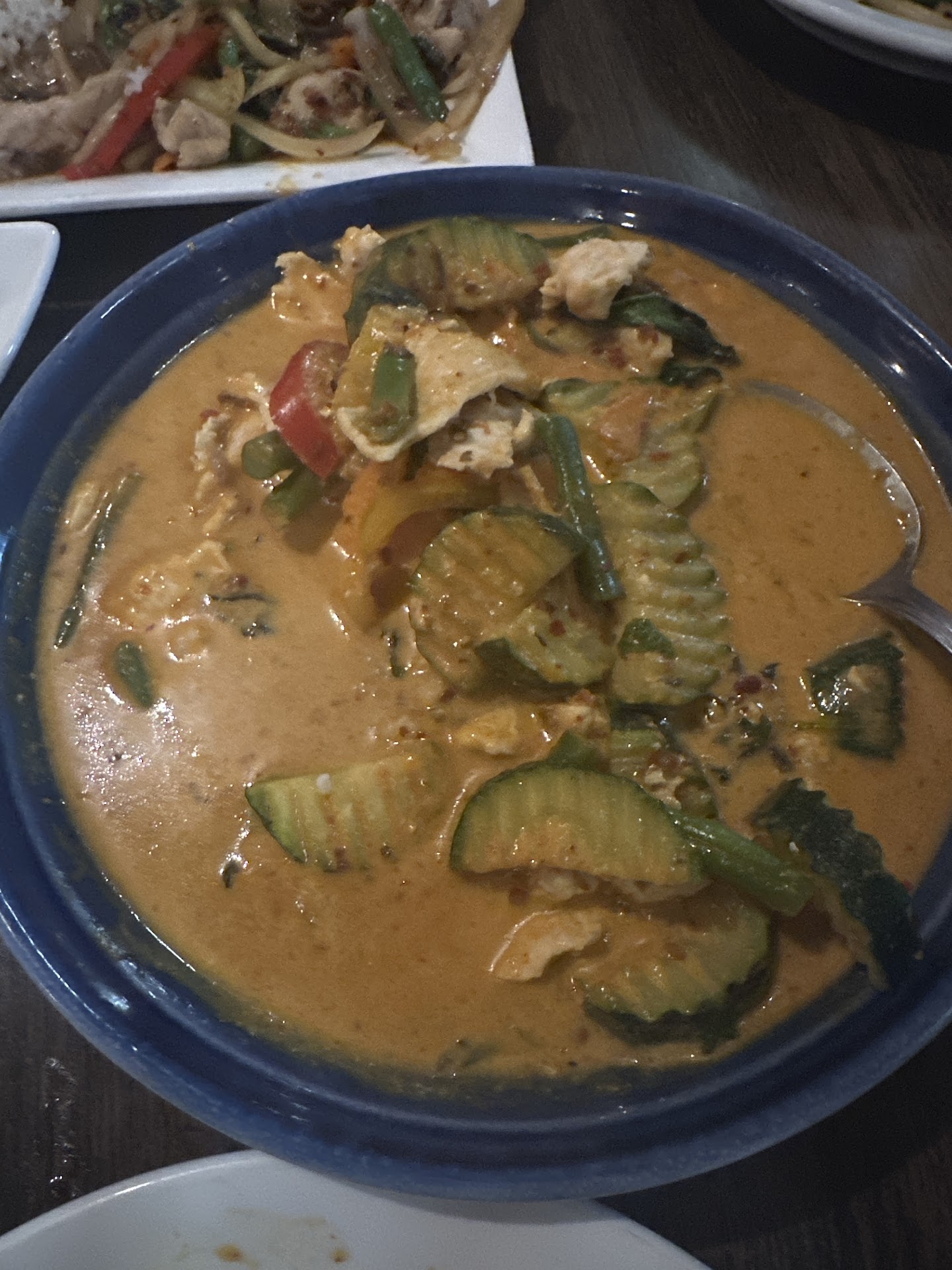 The red curry was a standout. I think it's probably the best red curry in the bay area. We had the roast duck red curry and a red curry with tofu. The vegetables and the thai basil were so fresh, sliced and cooked nicely. The duck was succulent. The spice level was perfect, right on that line where I would not want it any spicier! Also had a rich depth of flavor from their curry paste.