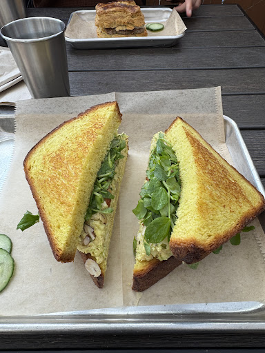 Sadly, the last few times I've been I've had pretty meh experiences. Monday (thank you for being open on a Monday!) I went there with a friend and my husband and arrived at 11:15 am. We waited in line for quite some time (which is totally fine!) and when we got up to the register to order our breakfast sandwiches, we were told that breakfast was no longer served after 11:30 - it was 11:38 (even though the people in front of us were able to order breakfast past the cut off time). Super disappointed and frustrated, my husband and I both got the Curry Chicken Sandwich. The sandwich was beautiful in aesthetics but incredibly dry and flavorless - dry bread with nothing on it and dry chicken with some sliced almonds, no salt, no seasoning, no moisture. I also ordered an espresso drink, which sometimes is wonderful, other times like Monday, it was steamed to just over room temperature. Very hit or miss if it will be good or not. :-/