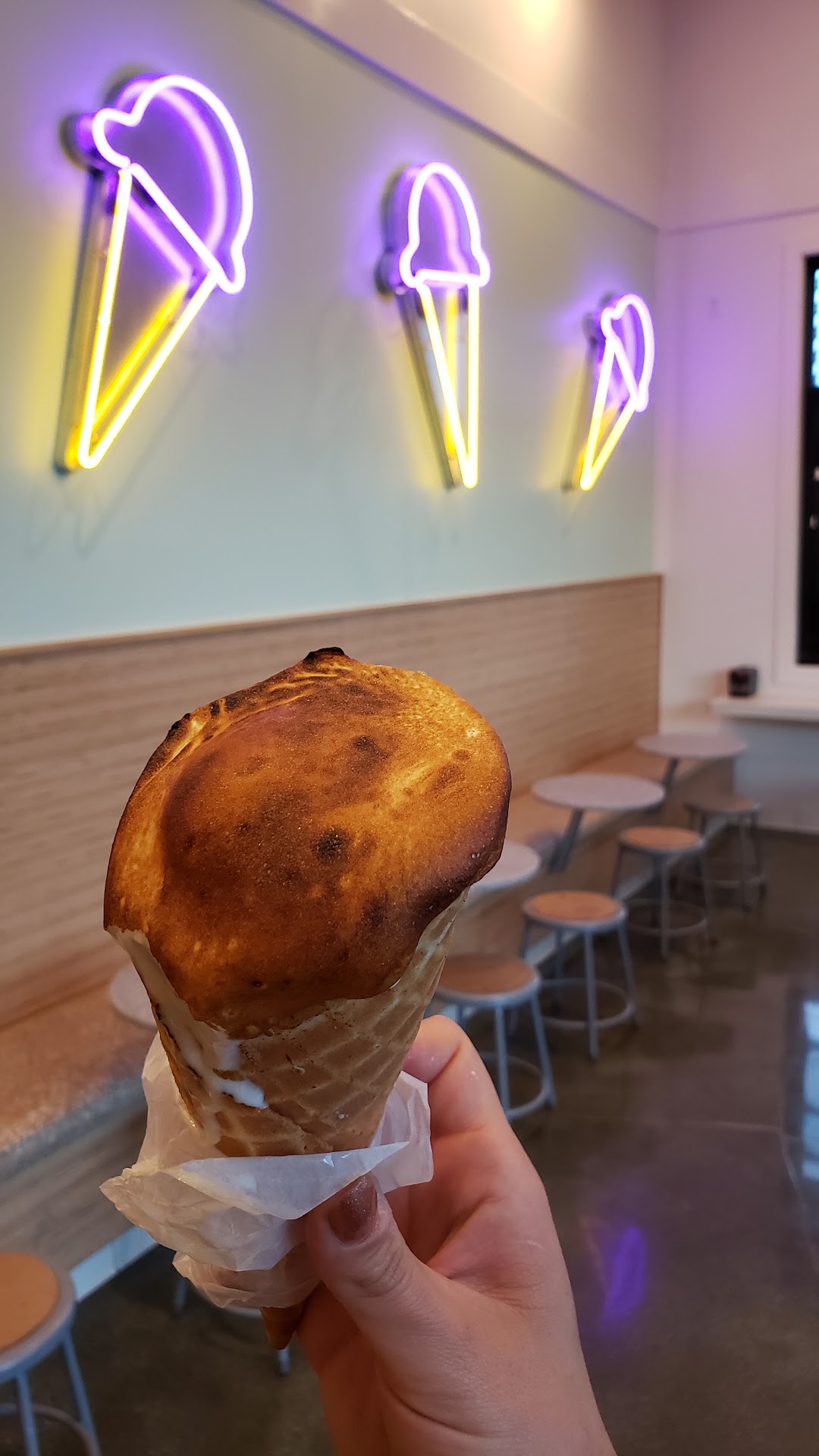 Read moreThe guy working at the counter was not friendly at all. The ice cream was alright , there are some interesting flavors… It reminded me of salt and straw which i absolutely love, but this ice cream didn’t measure up at all. The kids got mint chip which is usually a basic flavor, but this mint tasted like the actual plant… which is fine, but when serving small children it would’ve been nice to have been offered to taste it first, or given the heads up that it has a different taste. My kids aren’t allowed to waste, but they really didn’t like it so we threw theirs away. The cones were home made but tasted burnt. They gave a good portion, but the overall experience was bad. We won’t be back, and don’t recommend it. Hopefully they get better staff who put a little more love...