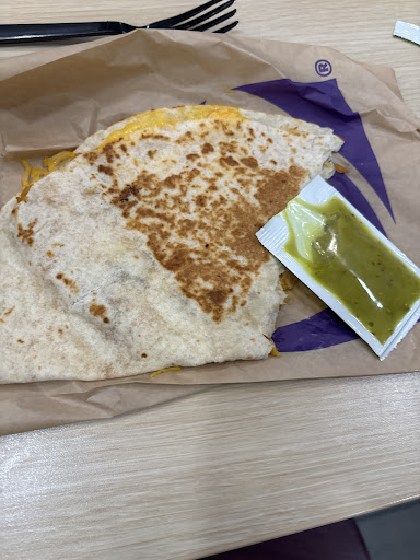 Read moreOur dining experience was very disappointing for Taco Bell! Normally we get really good service and are served delicious food. Not this time. We dined in. We placed our order. It was ready before we even got seated at our table. While I was trying to get a lid and straw for my soda, of the crew members was very rude and was cutting in front of me to stock the sauces. She also used a chair from our table that was right beside me so she could climb on it to fill the ice machine. When she finished, she kicked the chair back under the table and didn't say a word. Our food was terrible. My burrito and my mom's crunchy chalupa were loaded with so much sour cream and nacho cheese that it was running out the end. We couldn't finish our food. We ordered nacho fries that were a cold to the touch soon as we picked them up from the window. They were flimsy instead of crispy. The interior of the restaurant is also old and damaged. It is in need of repair. The walls have all sorts of dings and dents, floors and ceilings too. I might wait a while to go back to...