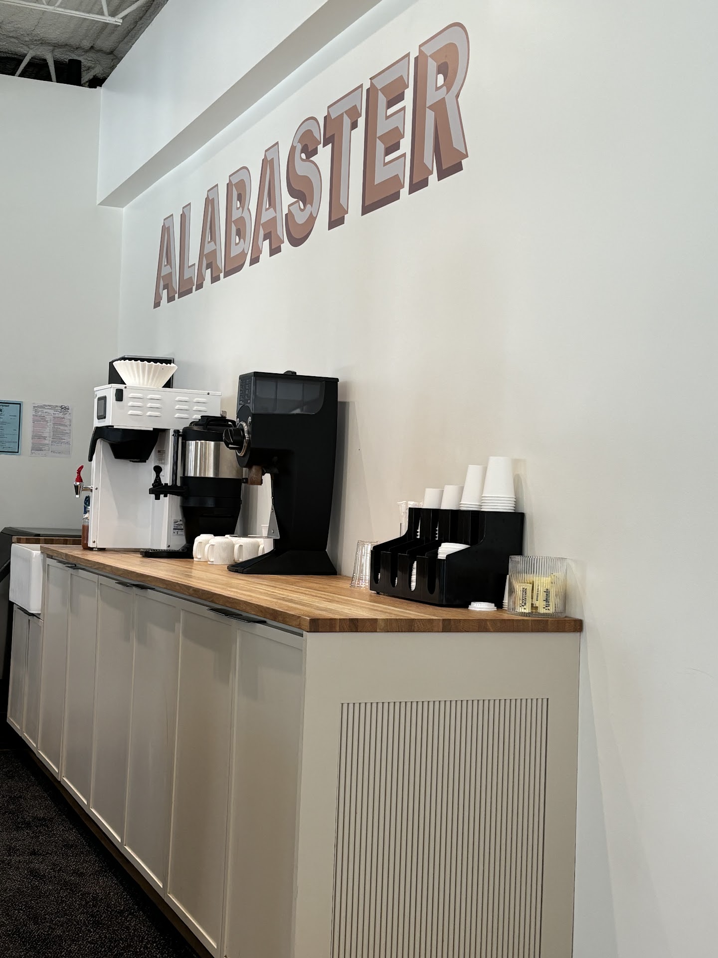 Read moreI was hopeful about this place because of all the 5-star reviews but this sadly is not a 5-star coffee shop. We were visiting for the weekend and stopped by on a Friday morning at 10 to get brunch and coffee. We were told all breakfast items were gone and it would be a 20 minute wait for lunch food. The only menu on the wall was block letters spelling out the coffee drinks. They had 1 laminated menu of the food that was being passed around by customers at tables and the worker went and took a picture of it with his phone and brought his phone back to me so I could decide what to order. I ordered an iced Americano with sugar free caramel syrup and my daughter ordered an iced cookies and cream coffee drink. I got a chicken pesto sandwich and she got a chicken Caesar salad. The Americano was mostly milk as you can see from the photo and possibly the worst coffee drink I’ve ever had in my life. The cookies and cream was just ok. We waited over 30 minutes for our food. The food we ordered was clearly pre made and heated up and nothing warranting the $40 I spent for 2 coffees, a salad and a sandwich. I’m truly shocked this place has 5-star reviews. I believe in supporting small business but if they are going to charge these kinds of prices they need to deliver better food and drinks. Definitely will...