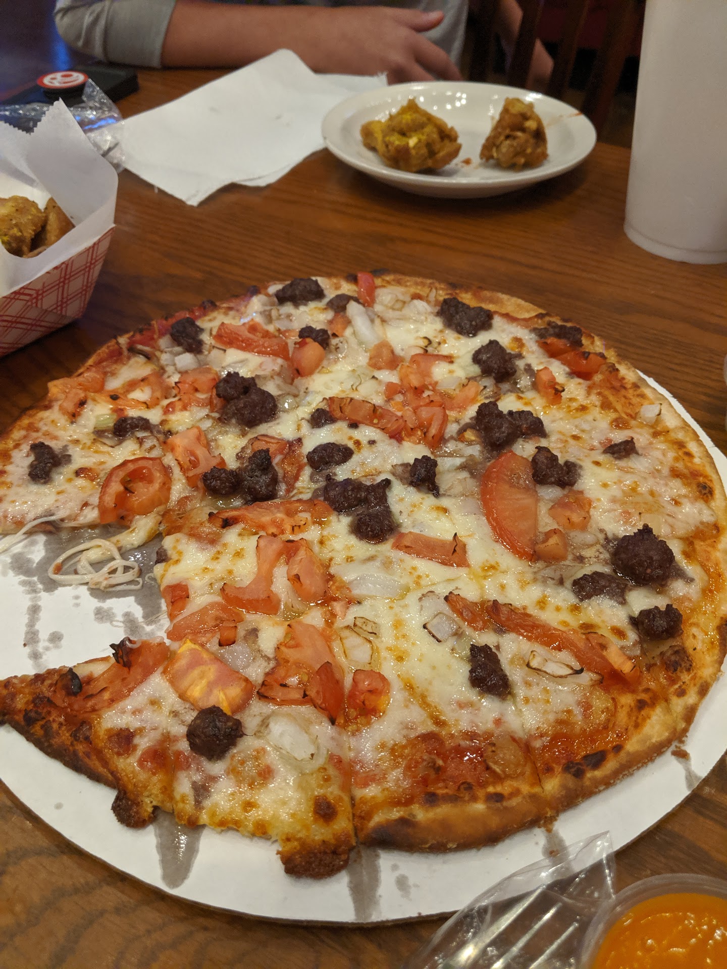 Read moreI had heard that this was the place for wings and pizza, so being from out of town I went.....and I regret it. First the good. The place was really clean, but this could be from the lack of customers on a Friday night. Our server, Hannah was super friendly and took good care of us. And the stuffed bread sticks we're crazy good. Now the bad. We ordered lemon pepper wings, 12 of them and what the menu said was a Bacon Cheeseburger Pizza. First the wings were tiny and very very dry. The lemon pepper seasoning was good. Now the "Bacon Cheese Burger Pizza" this was in my opinion the cheapest tasting pizza I have ever had. It doesn't even come with Bacon, it has Bacon bits....now it did say in the description that it had BACON BITS, but who reads the description of a Bacon Cheeseburger Pizza, you would think it was Bacon, meat and cheese. Oh and to top that off, they charge .50 cents for waters. And tea is $2.50. There may be better things on the menu but I will not be finding out. I will not come back here to try them. This is my...